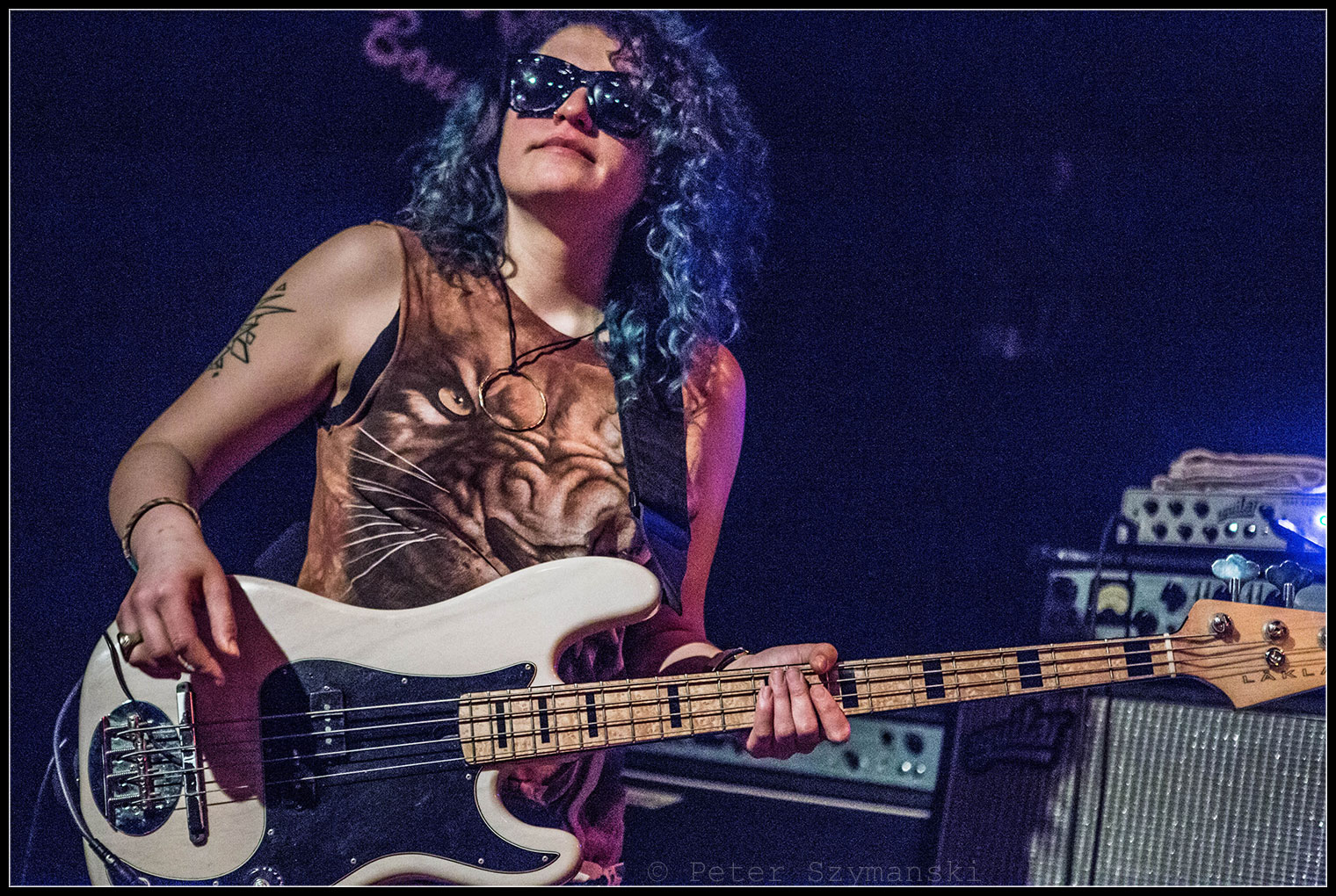 Doch der Himmel meinte es einfach nicht gut mit den Bonner Fans. Dabei konnte Belew ja auch auf ein starkes Rhythmusduo bauen. Julie Slick, die ihr virtuoses Bassspiel auch bei Crimson ProjeKct unter Beweis stellt, spielt ja schon seit fast zehn Jahren in Belews Trio und kann sich souverän auf jede Situation einstellen. Kleines Aperçu am Rande: Julie Slick ist die Tochter von dem langjährigen Bowie-Gitarristen und Belew-Freund Earl Slick. Ihr Bruder Eric spielt hin und wieder auch mal die Drums im Power Trio. Mutter Robin bloggt seit vielen Jahren (In Her Own Write).