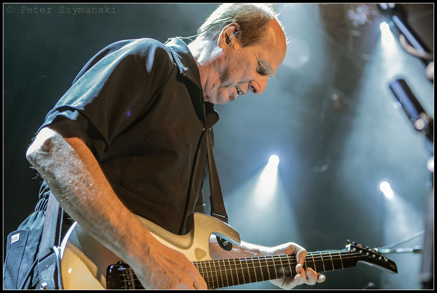 Dabei fing das Konzert mit dem langjährigen Gitarristen/Sänger/Komponisten von King Crimson und Wegbegleiter von Frank Zappa und David Bowie (siehe auch Interview) eigentlich zunächst vielversprechend an. Das Spiel mit den aufgelösten Akkorden, die Umformung diatonischer Tonstufen im Halbtonschritt wie etwa bei „Three of a Perfect Pair“ oder gar im Improvisationsteil zu „Beat Box Guitar“ – so typisch für die Musik von King Crimson – machten Lust auf mehr aus diesem musikalischen Weltenraum.