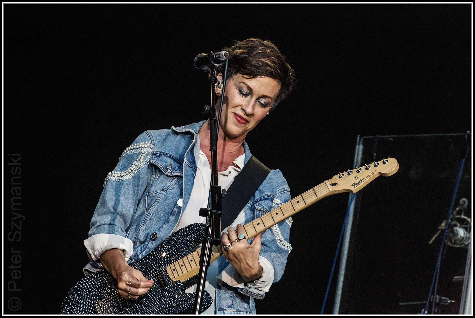 Und die 44-Jährige rast über die Bühne, ist praktisch ständig unterwegs, hetzt von einer Seite zur anderen wie ein gefangenes Raubtier. Lauter wird es auch nicht, als sie sich zu „21 Things I Want in a Lover“ eine schwarz-glitzernde Telecaster umhängt. Als die Fans aus Freude über „Forgiven“ klatschen, hört man sie gar nicht mehr.
