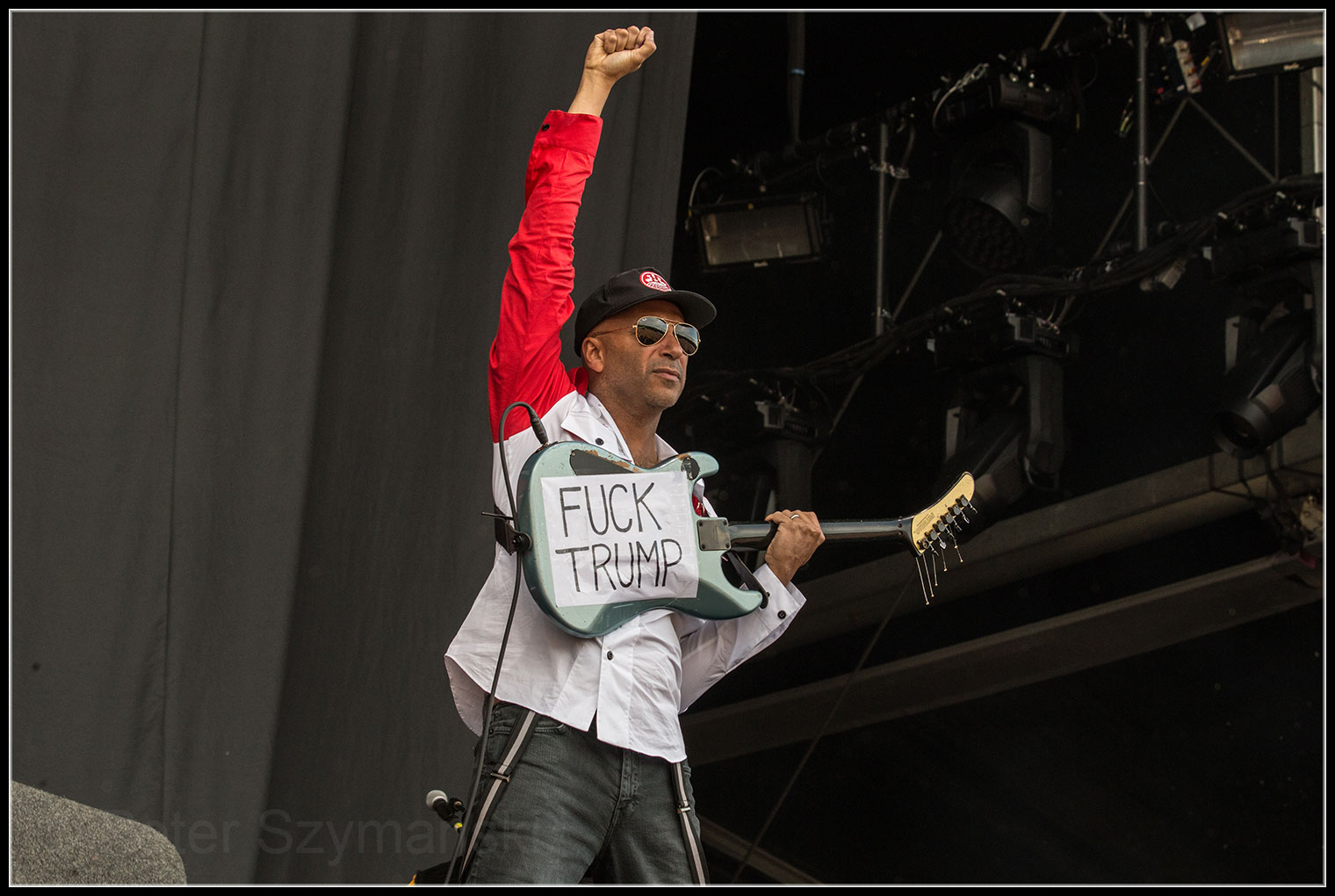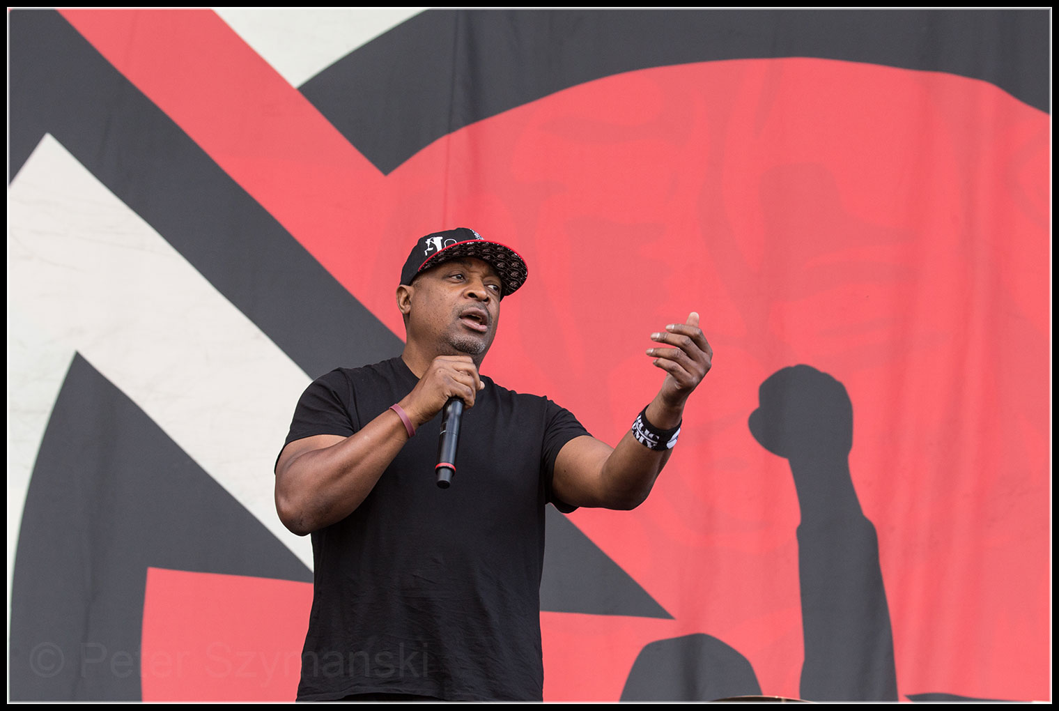 Tatsächlich gibt es heute doch keine Bands mehr, die in diese Richtung gehen. Es ist dieser typische Sound von RATM, die einen umhauen, diese hart entgleisenden Riffs, die hektischen, übellaunigen Kratzer in Morellos Spiel. Viele bekannte Stücke spielt die Band: „Bullet In The Head“, „Insane In The Brain“, „Jump Around“ und dann eine furiose Version des klassisch-rebellischen Rocksongs „Killing in the Name“. Merkwürdigerweise war das nicht einmal das Highlight. Diese Ehre gebührt der herzzerreißenden Interpretation von „Like A Stone“, eine Hommage an den kürzlich verstorbenen Chris Cornell, der mit Tom Morello diesen Song mit der Band Audioslave gesungen hatte. Der Sänger am Montagabend: Serj Tankian. Der Frontmann von System of a Down wird hinter den Kulissen auf die Bühne gewinkt und ist plötzlich im Mittelpunkt der Prophets Of Rage. Wahnsinn. Und mit welcher Hingabe er den Song singt!