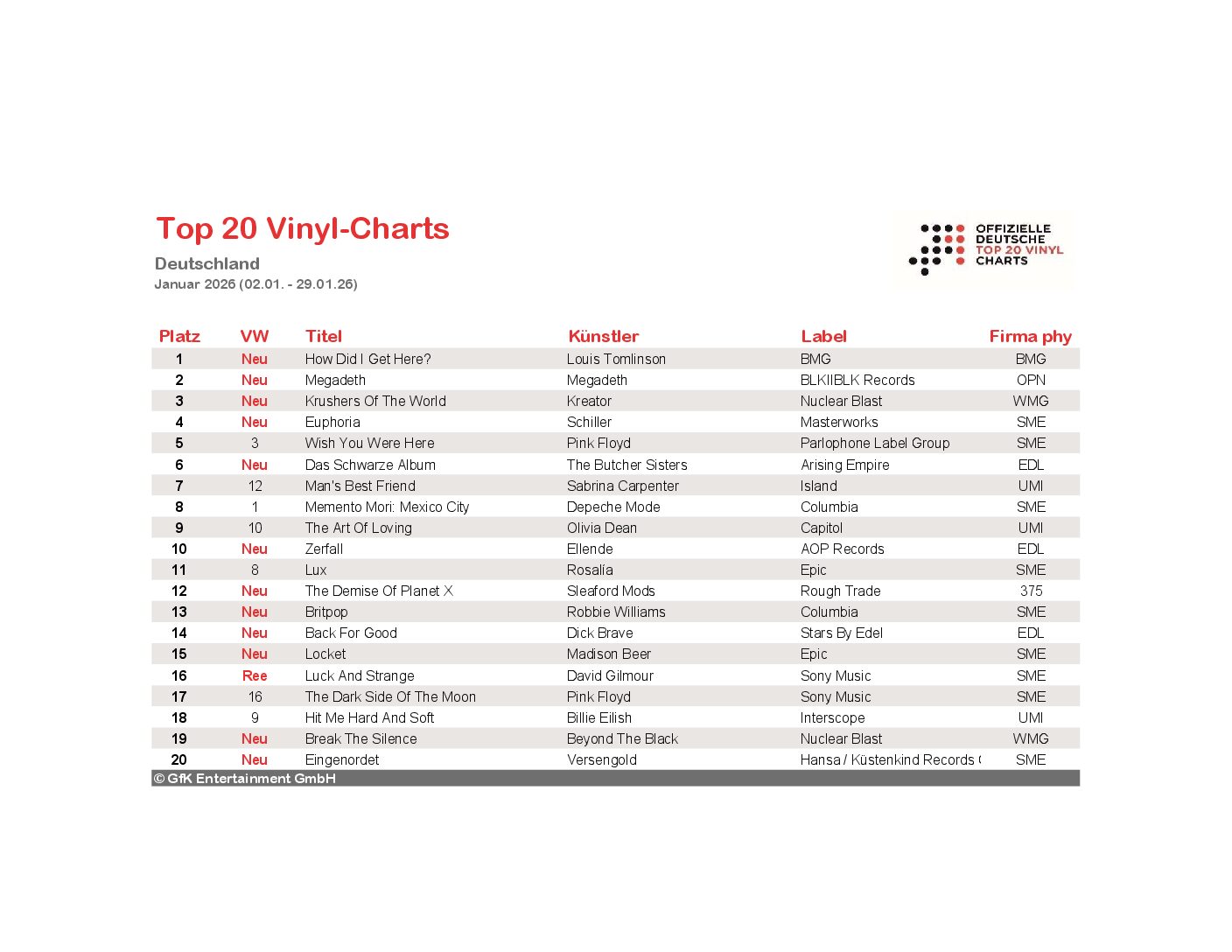 Vier Metal-Bands in den Top 10. Dennoch: Pop schlägt Metal – Louis Tomlinson dominiert die Offiziellen Deutschen Vinyl-Charts