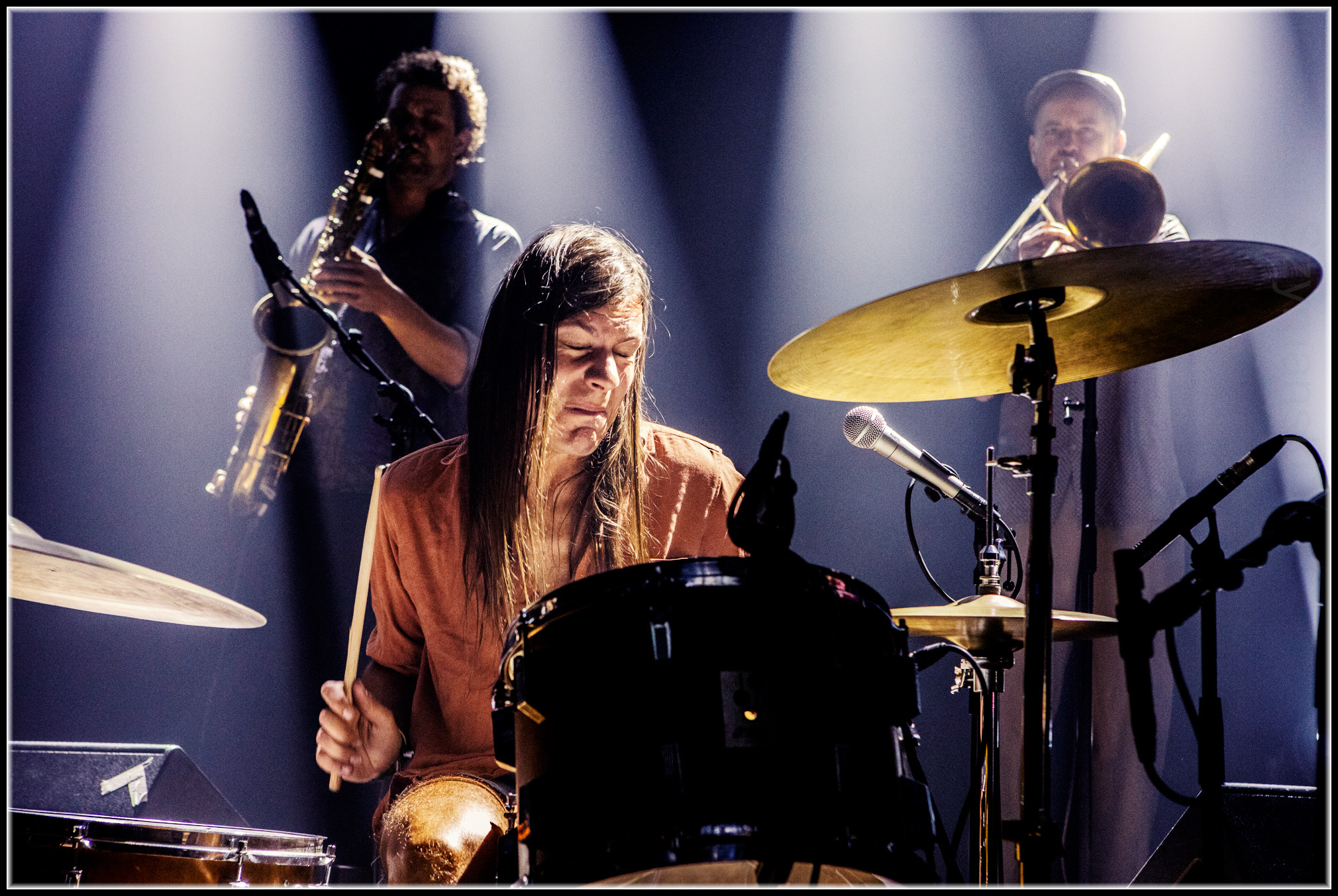 Und zur Dramaturgie ihrer Songs und des Ablaufs dieses abenteuerlichen Abends gehört das nach und nach Öffnen der kleinen musikalischen Geschenkpakete. Da sind wilde Ausbrüche, gefühlsbetonte Soli, darunter das wunderschöne Posaunensolo von Meinking auf „Beefheart“ oder das Gitarrensolo auf „Where No Man Has Gone Before“, expressive Gluten, selbstironische Zitate. Der Kreis des musikalischen Trips schließt sich mit einer Verbeugung vor der frühen Progrockbewegung, bei der dann auch die Orgel nochmal zum Einsatz kommt. Traumhaftes Konzert. Alles richtig gemacht!