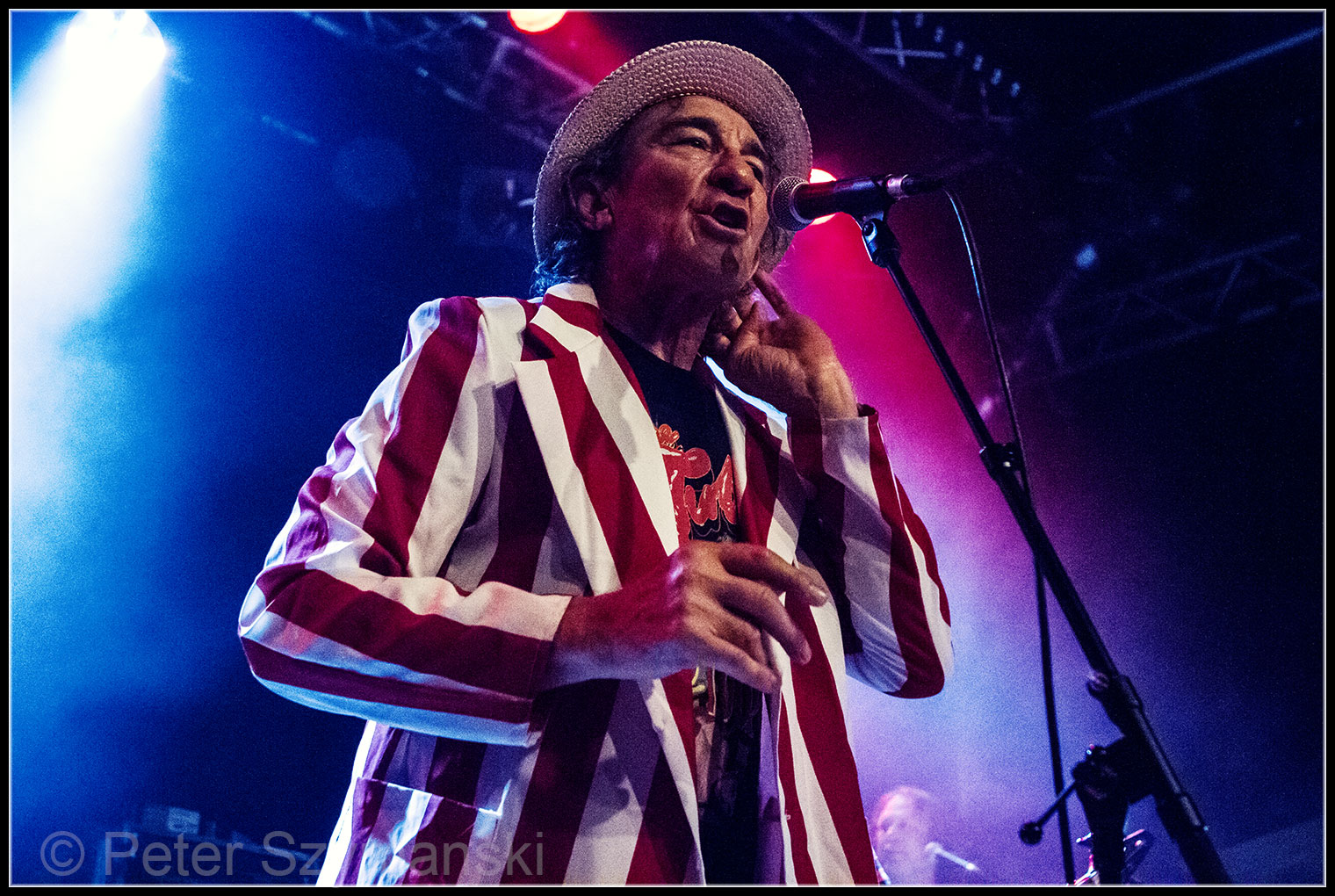 Upps, was ist das denn? Drummer Prairie Prince kommt im schicken Anzug, weißem Hemd, auf die Bühne, und selbst Fee Waybill hat sich in Schale geworfen: schwarzer Borsalino und überweiter Nadelstreifenanzug. Aber der Abend sollte noch zeigen, dass er nicht enttäuschen würde. Der Mann ist immer noch der „Mystery Man“, wie er sich auf der Pulp Tour präsentiert. Früher waren The Tubes schon arg rokoko, ihre Shows waren so überladen und aufwendig, dass sie kaum rentabel waren.