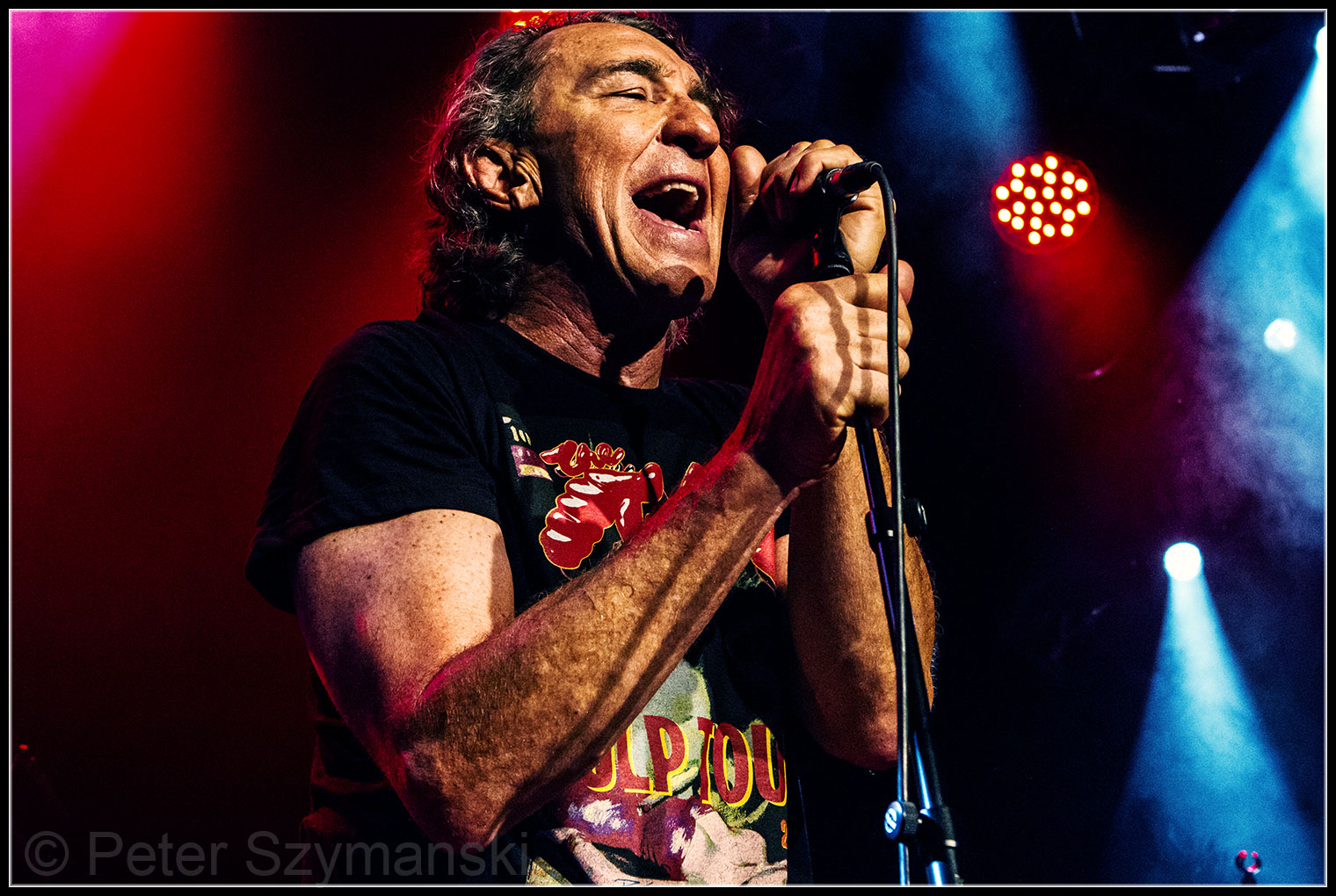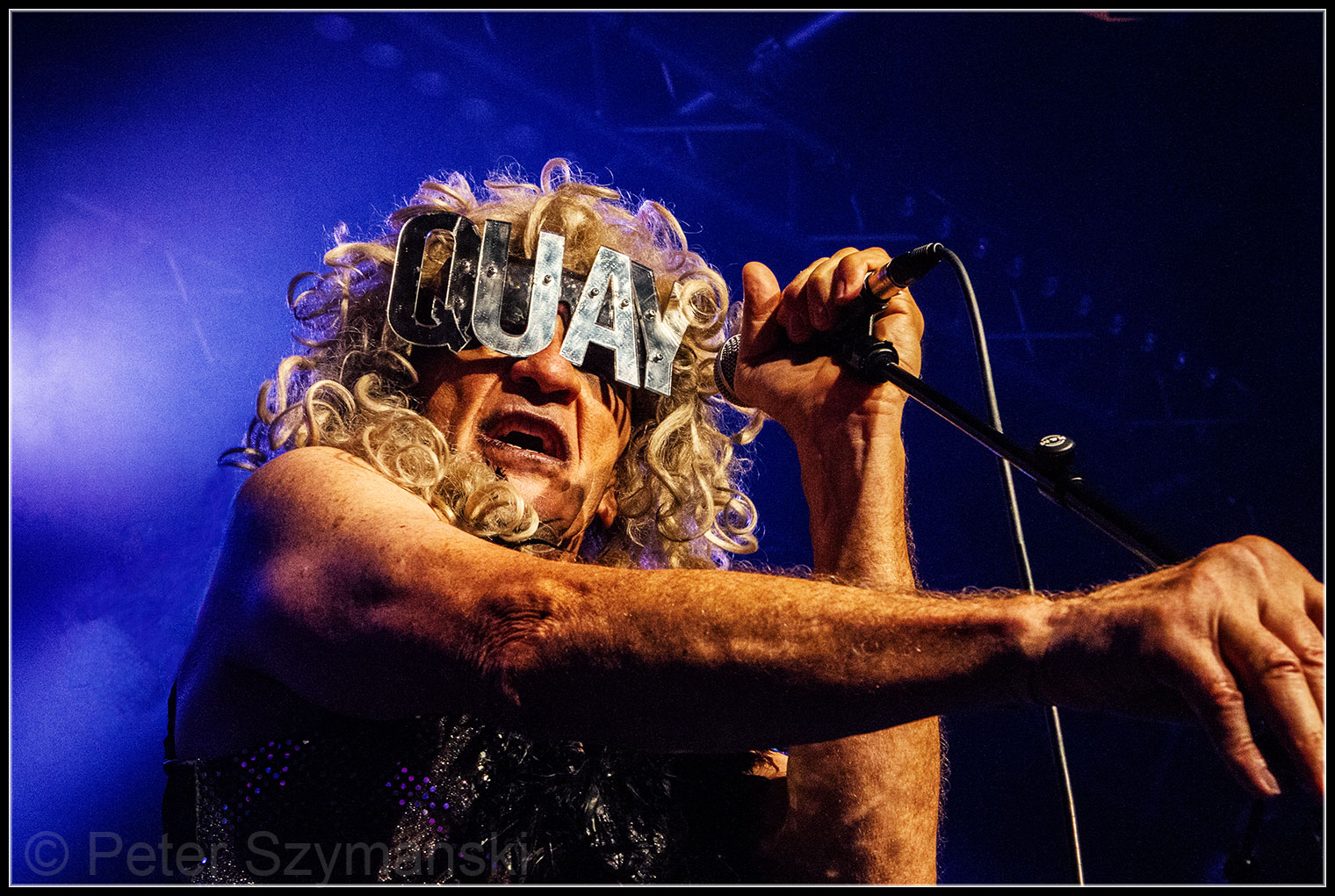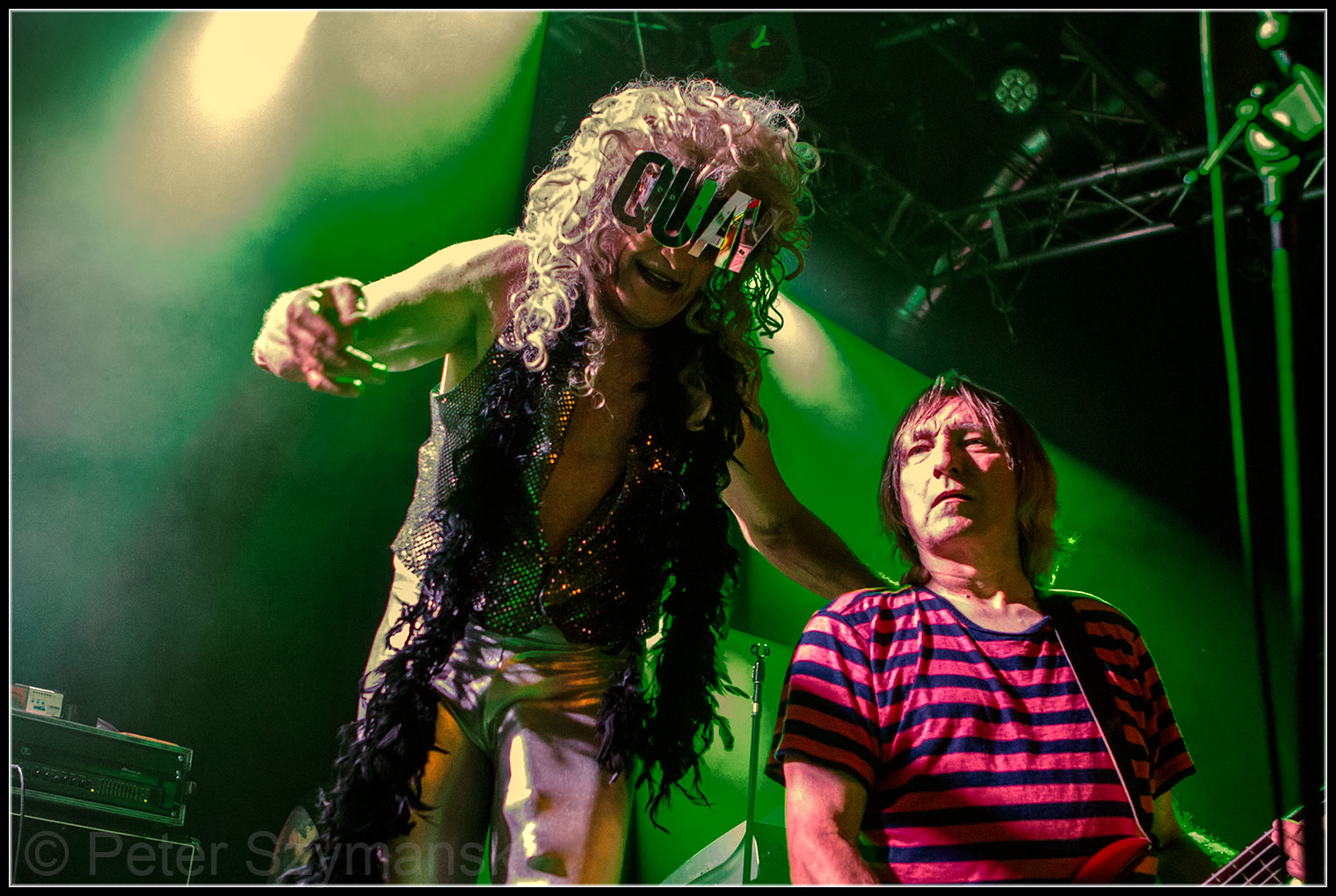 Auch wenn Fee Waybill mit seinen 66 Jahren längst nicht mehr über die Stimmbreite seiner Jugend verfügt, das Brüchige, Raue, Spröde seiner Stimme passt ganz hervorragend in die hin und wieder doch recht schräge Show. Fee ist dauernd damit beschäftigt hinter der Bühne in immer wieder neue Bühnenoutfits zu schlüpfen. Passend zu den Stücken. Zu „Mr. Hate“ stolpert er in Zwangsjacke und grotesker Vogelmaske auf die Bühne.