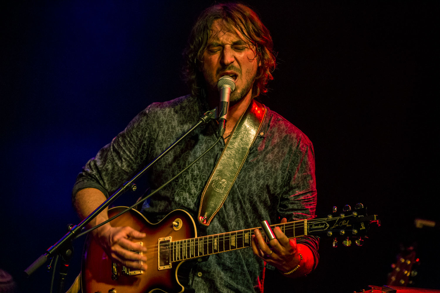 Was Wille da mit seiner Guild Westerngitarre macht, ist sowieso schon mal total wahnsinnig. Der Kerl malträtiert sie wie einst Jimi Hendrix, lässt sie jaulen, schreien, kreischen, jammern. Mal zupft er sie filigran wie ein Folksänger, streichelt sie wie ein Countrymusiker, schlägt sie wie ein düsterer Messias des Blues oder quält sie eben wie ein Rocker. Er jagt den Sound über etliche Effektgeräte, die er vor sich liegen hat und singt sich die Seele aus dem Leib. Mit seiner Reibeisenstimme, die irgendwo zwischen Chris Cornell und Tom Waits schwingt, hat er das Publikum eh schnell für sich eingenommen.