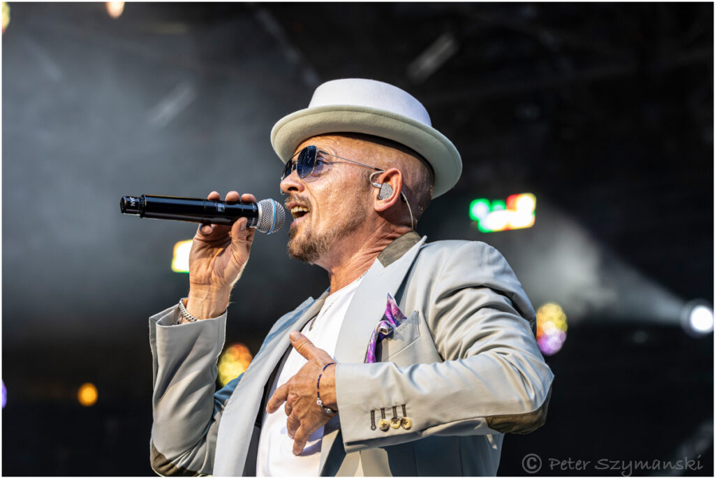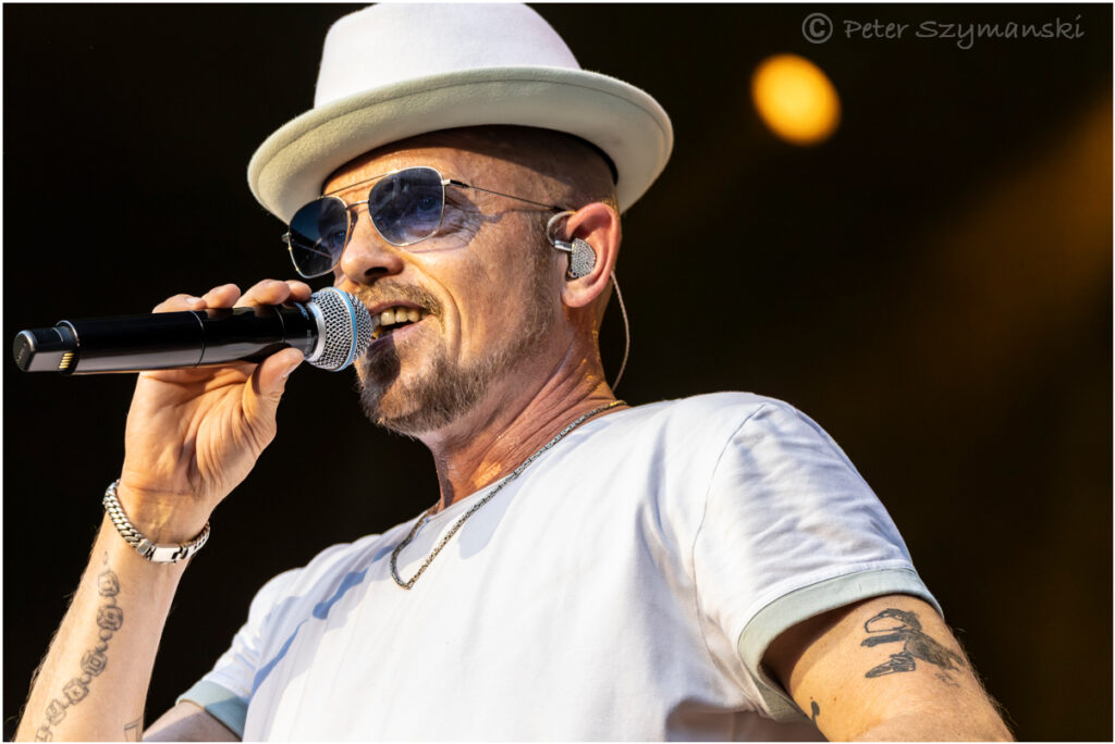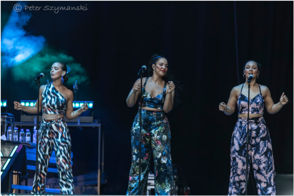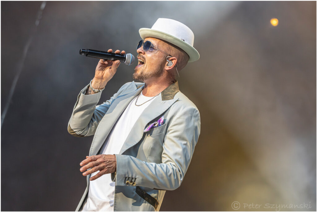 Dass Disko No.1 nicht einfach eine Begleitband ist, sondern ein Funk- und Groove-Orchester erster Klasse, hört man an jedem Arrangement: Bläserlinien, die wie Sonnenstrahlen aus den Boxen schießen, knackige Breaks, die den Songs live noch mehr Drive geben, und Übergänge, die so geschmeidig sind, dass selbst ein Medley aus „Are You Gonna Go My Way“ (Lenny Kravitz, 1993) – Luftgitarrenpflicht –, „Pump Up The Jam“ (Technotronic, 1989) – plötzlich wirkt der KunstRasen wie eine 80er-Jahre-Aerobic-Convention – und „Remmidemmi“ (Deichkind, 2006) – hier bricht kurz das absolute Festival-Chaos aus – völlig natürlich wirkt. Dazu die Backgroundsängerinnen – mehr als nur Chor. Sie tanzen, lachen, singen sich gegenseitig hoch, übernehmen kleine Soli und bringen mit ihren harmonischen Einwürfen dieses warme, soulige Glitzern in den Sound, das selbst knallharte Rap-Passagen zum Funk-Fest macht. Und eine Augenweide sind sie eh.