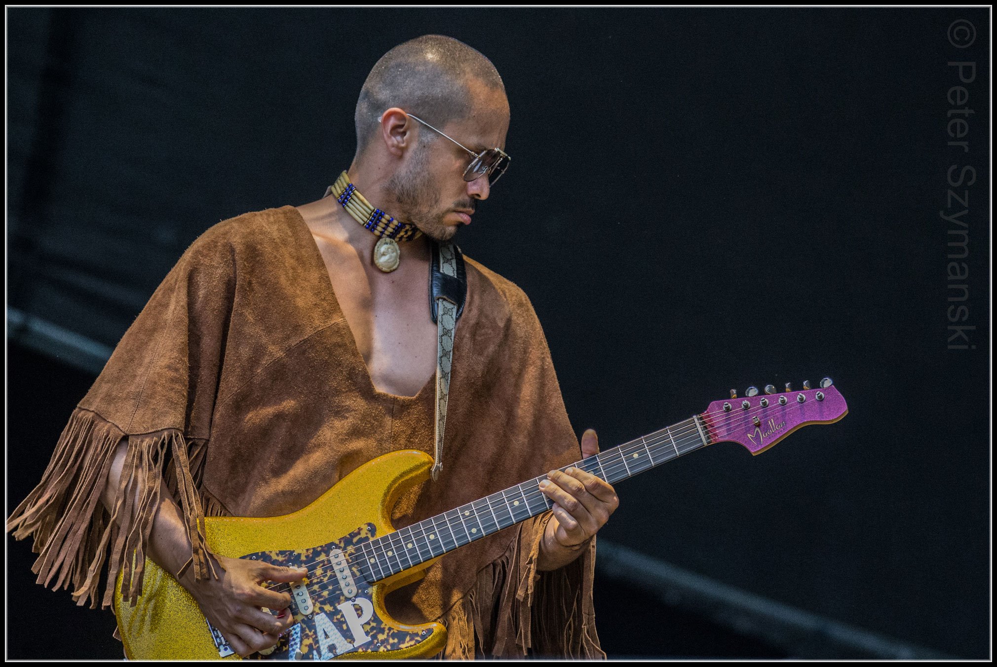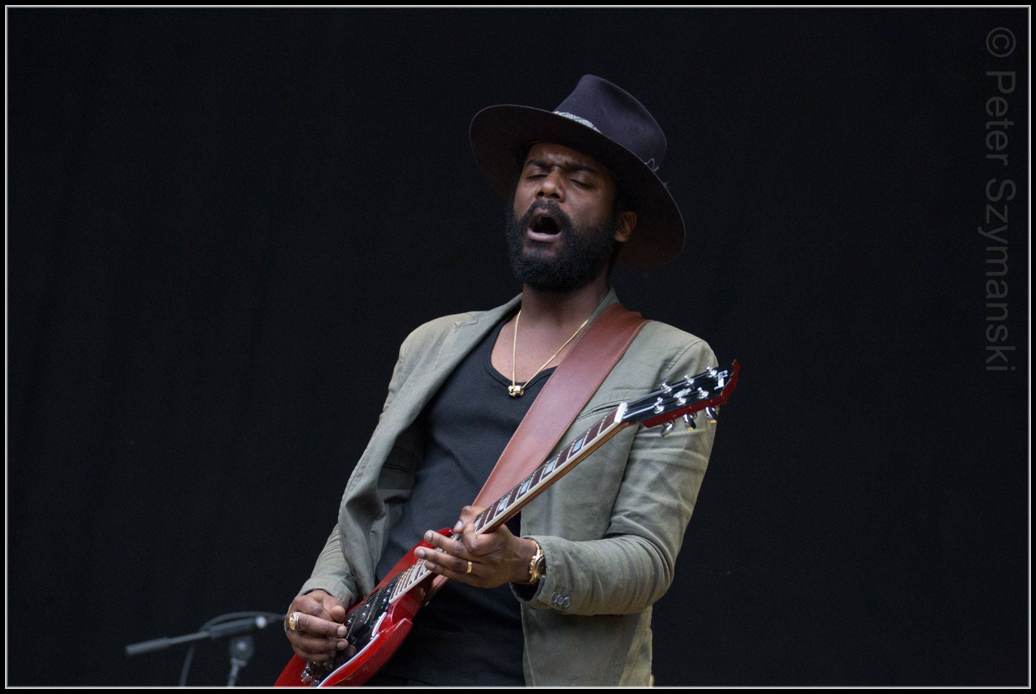Als Support für Steve Winwood hatte Veranstalter Ernst-Ludwig Hartz den einzigartigen Gitarristen Gary Clark Jr. Engagiert. Der Start machte Clark mit dem „Catfish Blues“, einem Klassiker der Bluesgeschichte. Schon Jimi Hendrix liebte Robert Petway. Und so klang Gary Clar Jrs. Version auch. Sehr Hendrix, sehr schleppend und schwül wie die Luft an diesem Sommerabend. Meine Fresse, was hat der Mann für einen Sound auf seiner SG und ein Gefühl. Schon beim ersten Song hat man das Gefühl von Ekstase, die der 34-jährige Texaner freilich sehr gezielt einsetzt.