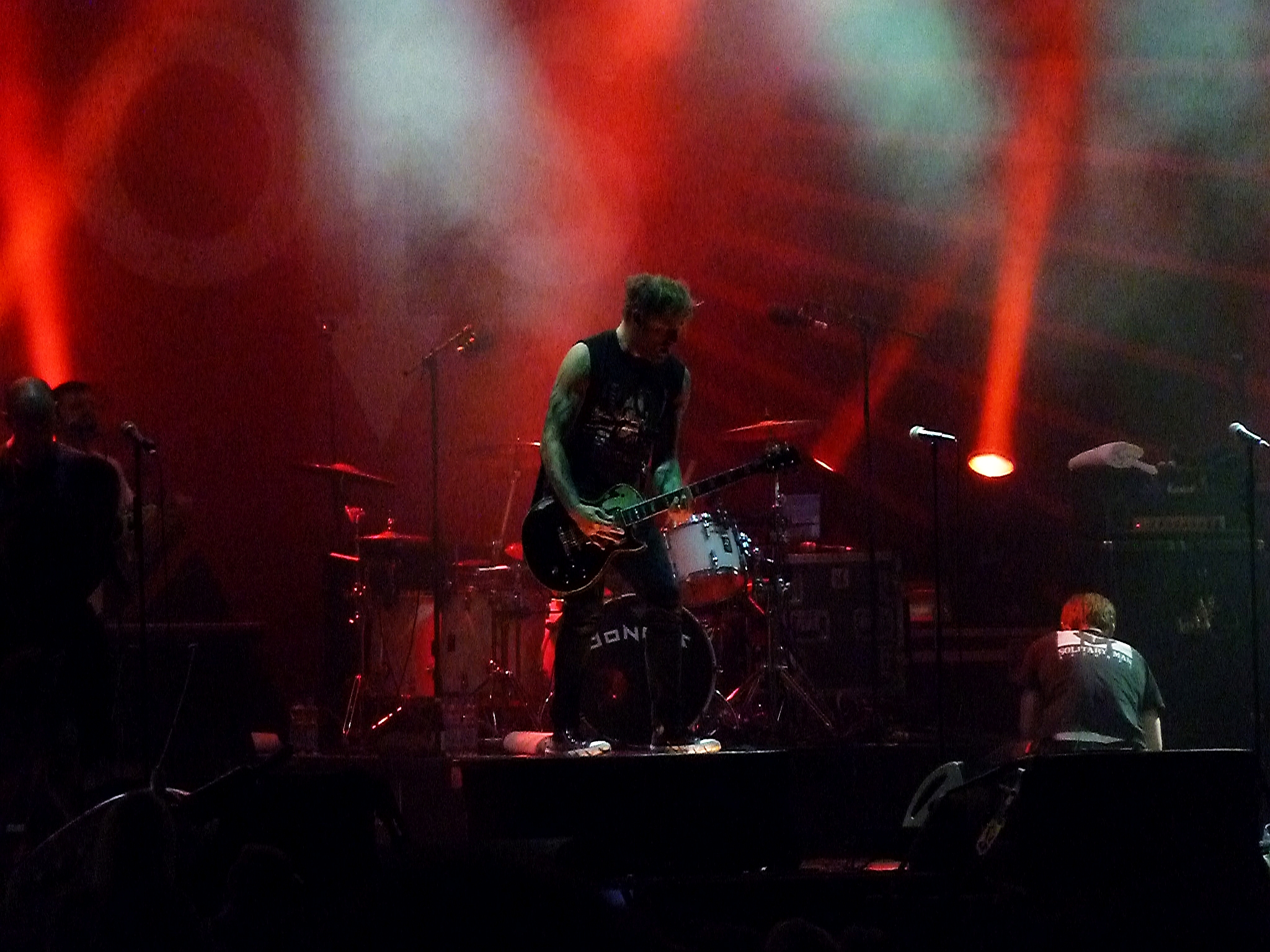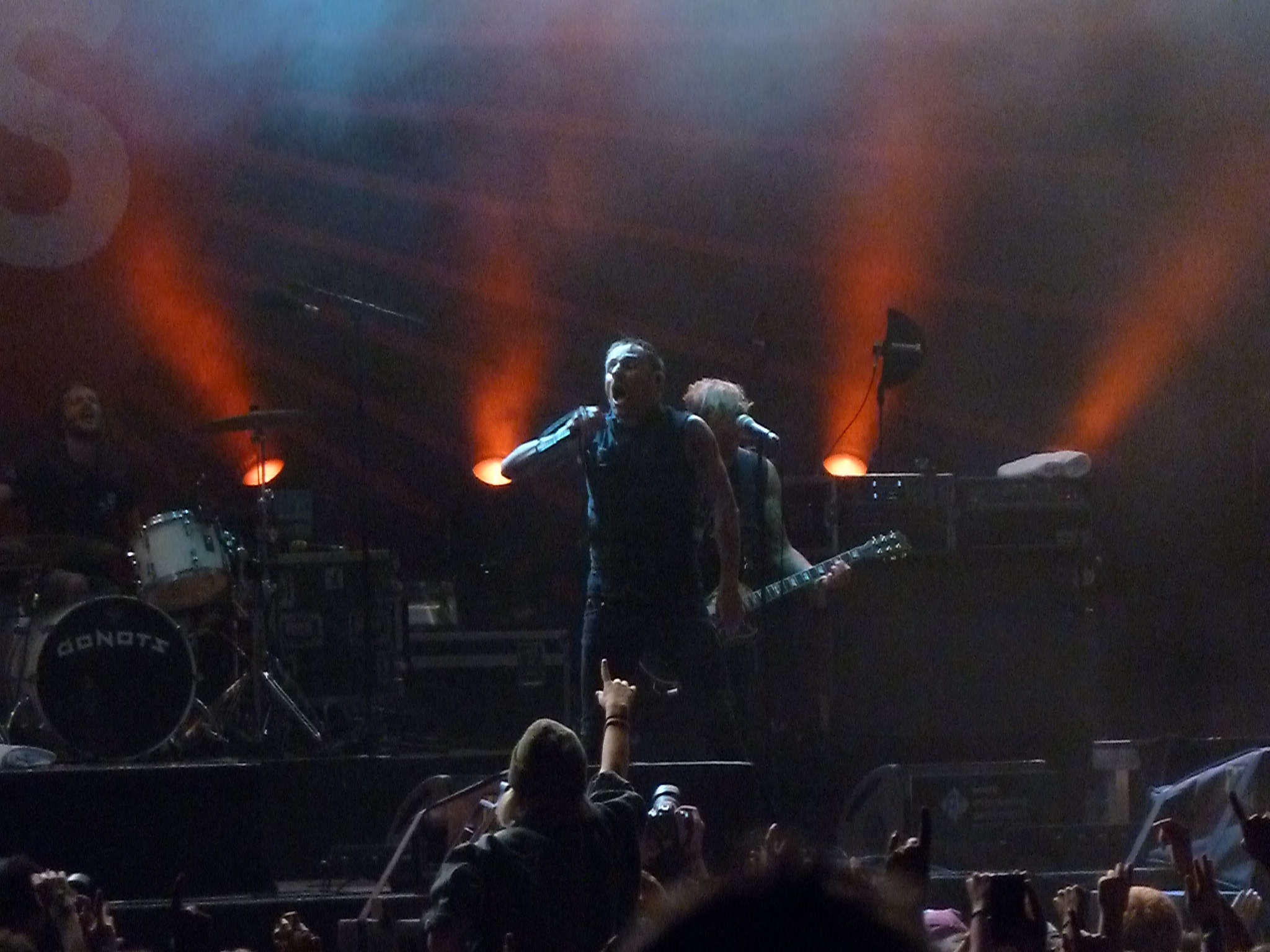 Die Donots schienen selbst ziemlich verblüfft von diesem Festival mitten im Wohngebiet. „Sowas gibt’s in Köln nicht“, stellte Frontmann Ingo Knollmann verblüfft fest. Er mag auch noch das eine oder andere Scherzchen über die Nachbarschaft machen, Fakt ist, dass die Reininger Brüder und ihre Crew wohl die beste Nachbarschaft der Welt haben, wenn sie sowas veranstalten dürfen. Ingo Knollmann, der erst vor ein paar Tagen seinen 40. feierte, und sein Bruder Guido sind natürlich die bestimmenden Leute auf der Bühne. Übrigens: Der Sound war an diesem Tag erstaunlich gut abgemischt. Der Brachial-Alternative-Rock mit Punkpop-Elementen der Donots funktionierte hervorragend. Es war lauter als auf dem Kunst!Rasen, aber bedeutend leiser als sonst bei der Truppe, die eine ausgelassene Stimmung verbreitete.