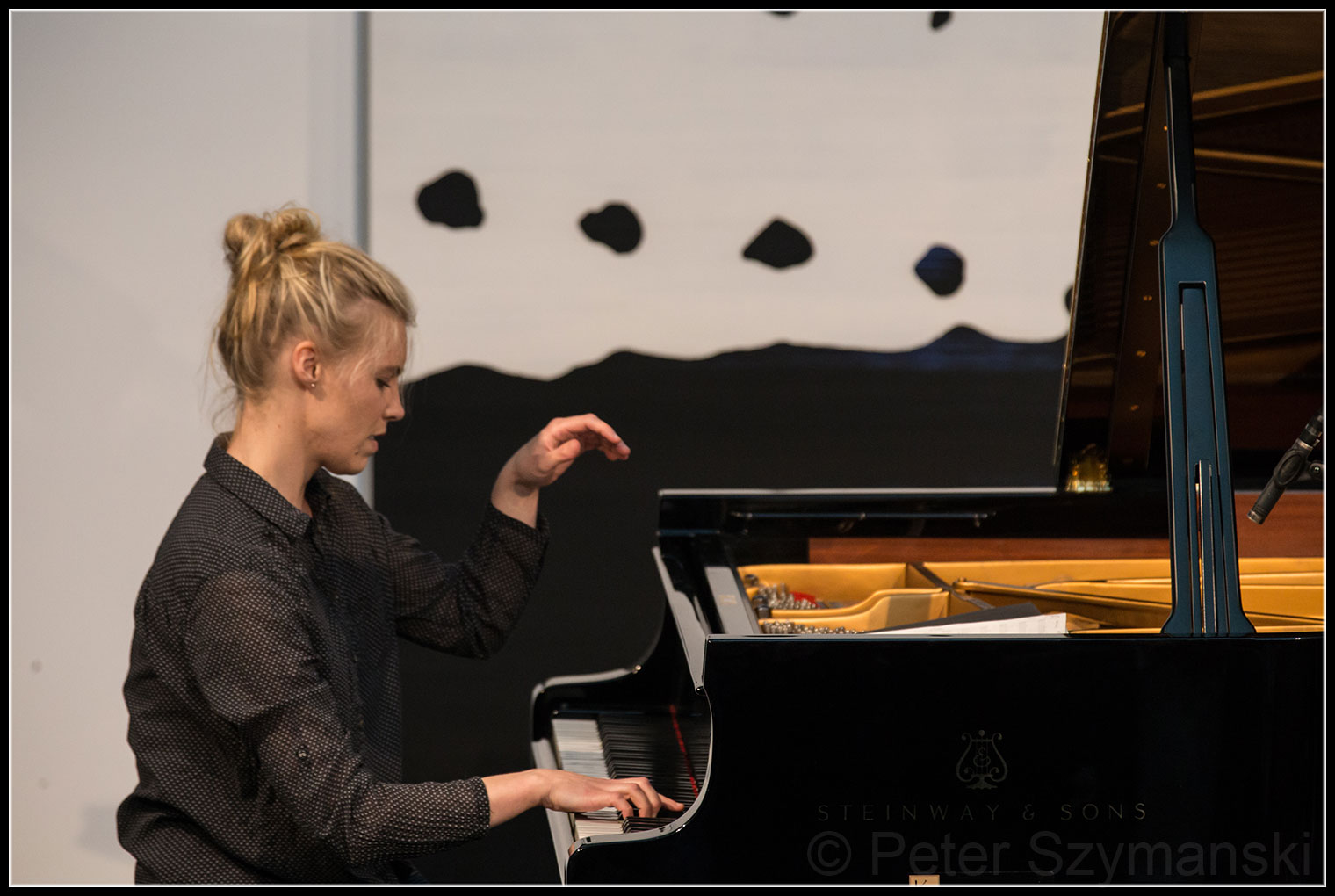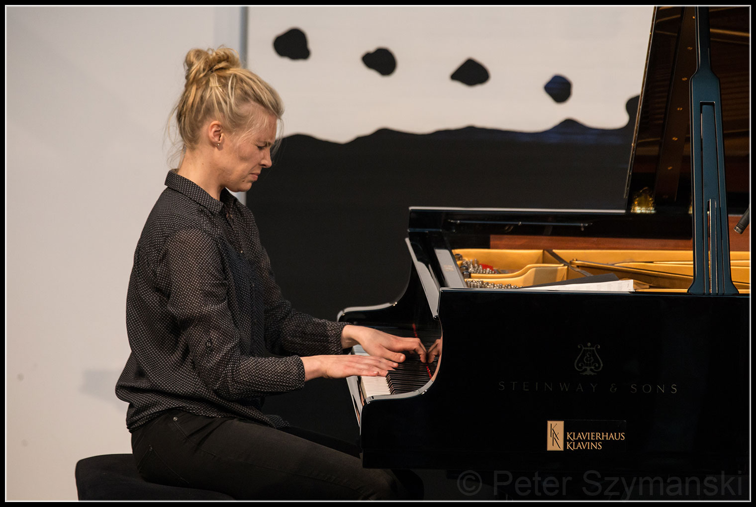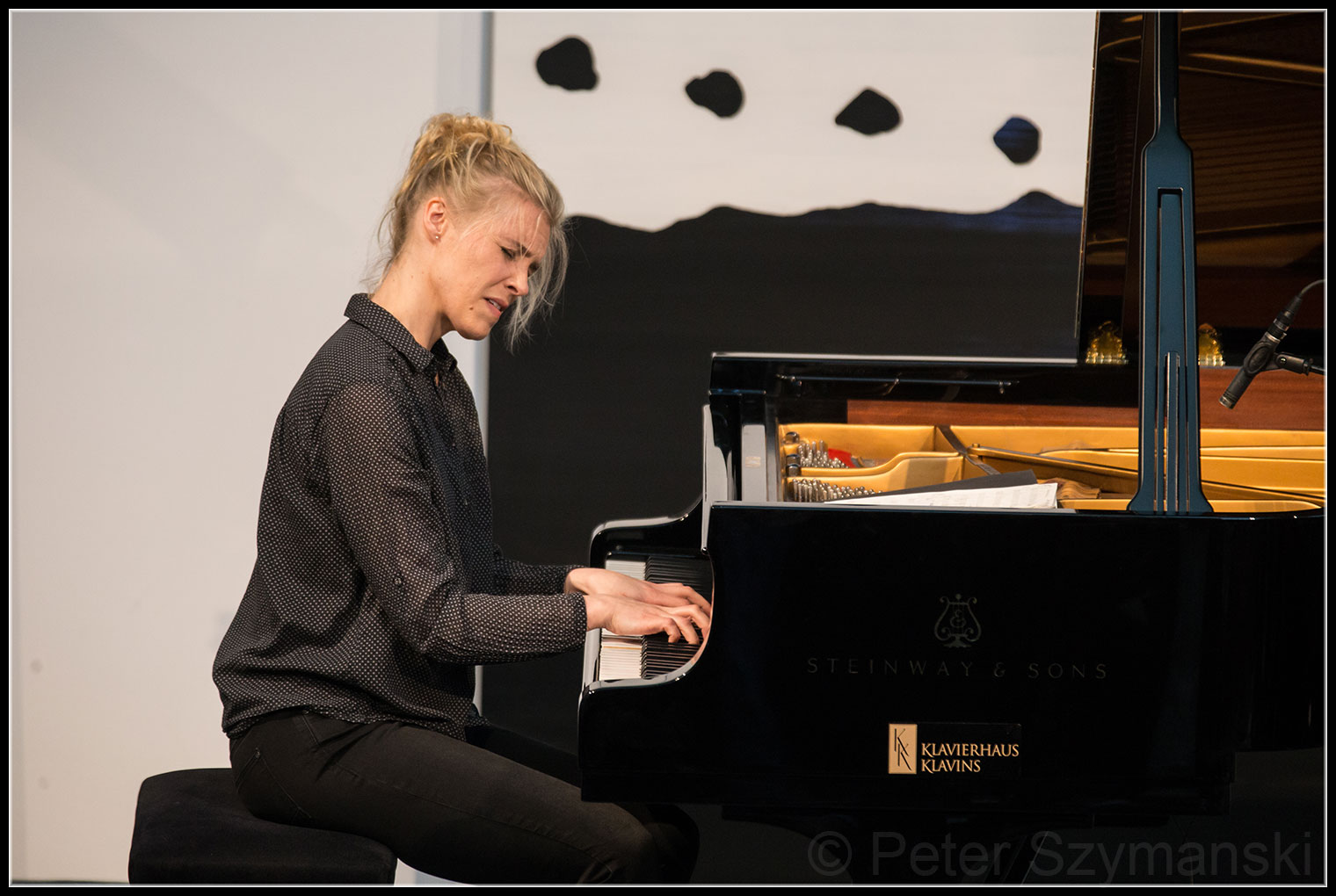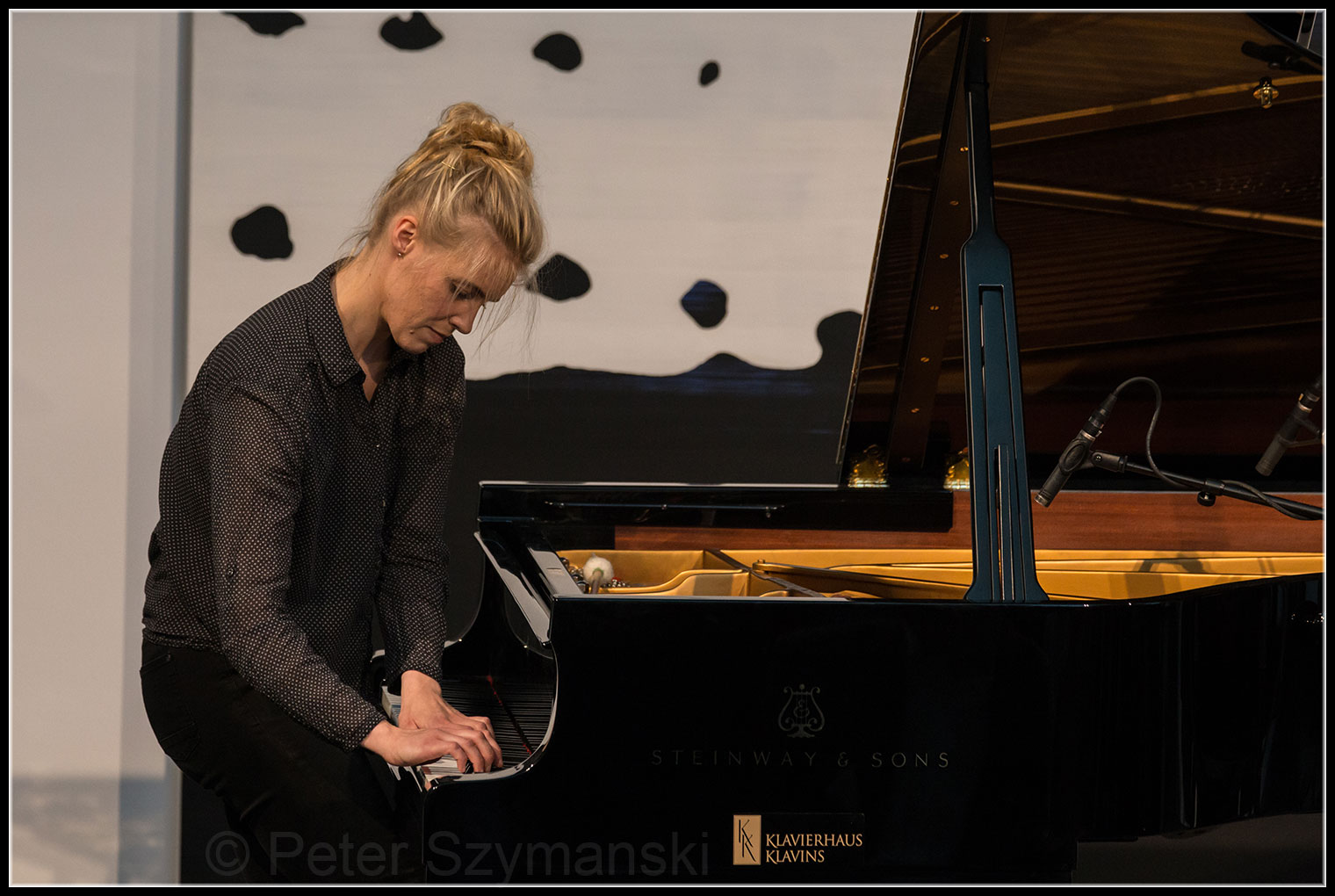 Die 30-Jährige Berlinerin, die ganz unprätentiös die Bühne im Volksbankhaus in der Rheinaue betritt, strahlt übers ganze Gesicht, wenn sie eines der Solostücke beendet hat und den Applaus entgegennimmt. Beim Spiel indes ist sie hochkonzentriert, völlig versunken am Klavier. Manchmal, so scheint es, kommt das Kind aus ihr heraus, das sich überlegt, welchen Streich es als nächstes anstellen kann. Wie ein ausgelassenes Kind, das mit Fingerfarben eine Fläche bearbeitet, schafft sie mehrschichtige Klangcollagen voll eloquenter Schöpferkraft.