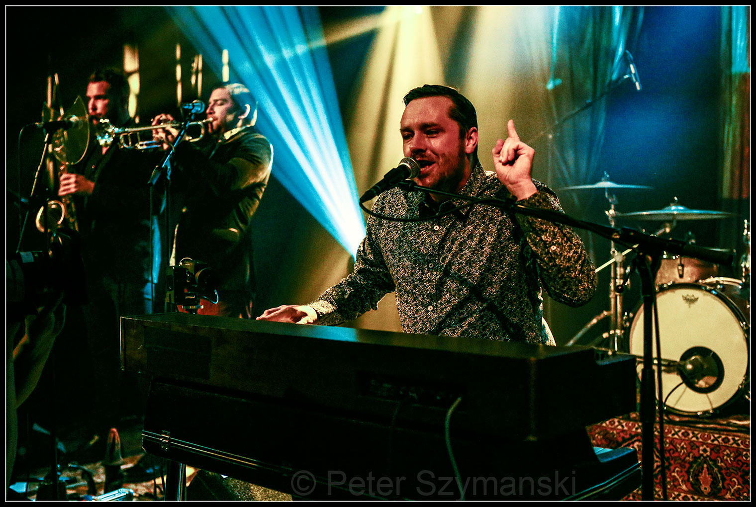Den Rest übernimmt seine Band, die mit Saxophon, Trompete, Bass, Gitarre und Schlagzeug ein authentisches Soulfeeling der 60er und 70er Jahre transportiert. „Falls ihr euch gefragt hat, was der rote Faden heute Abend ist – mir wird verdammt oft das Herz gebrochen“ lacht Finnigan. Dabei verlieren sich die Songs aber nicht in Trübsal, sondern werden im Gegenteil mit treibende Funk- und Psychedelic-Elementen angereichert und machen einfach Spaß.