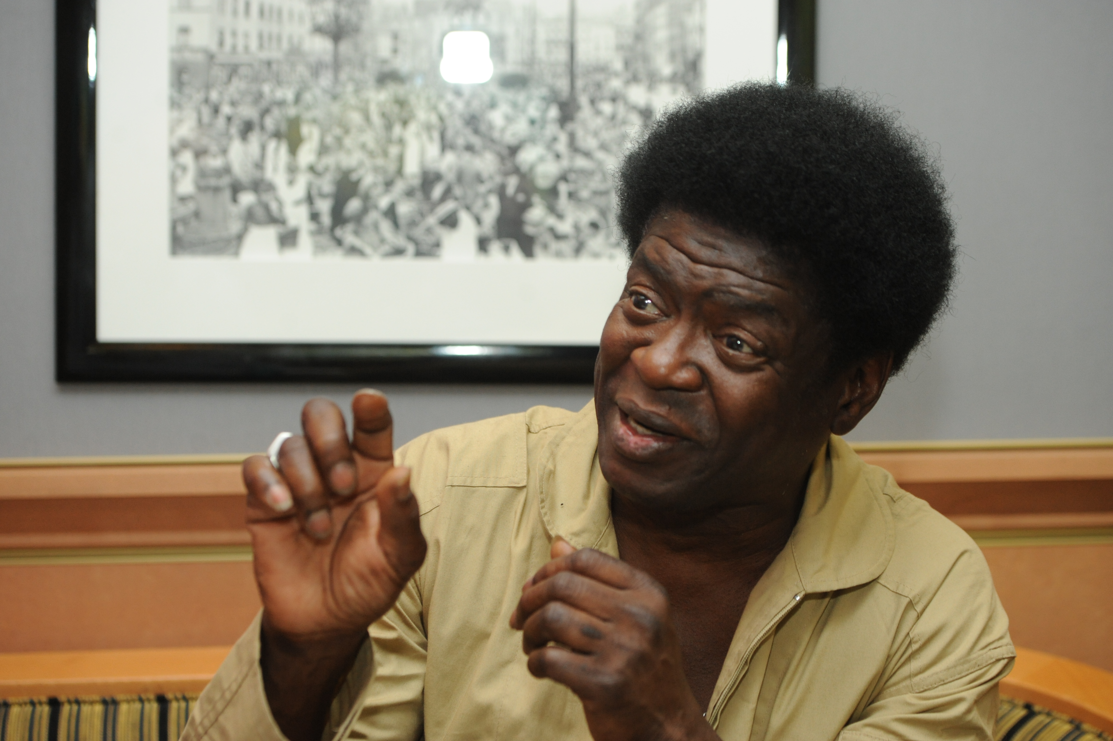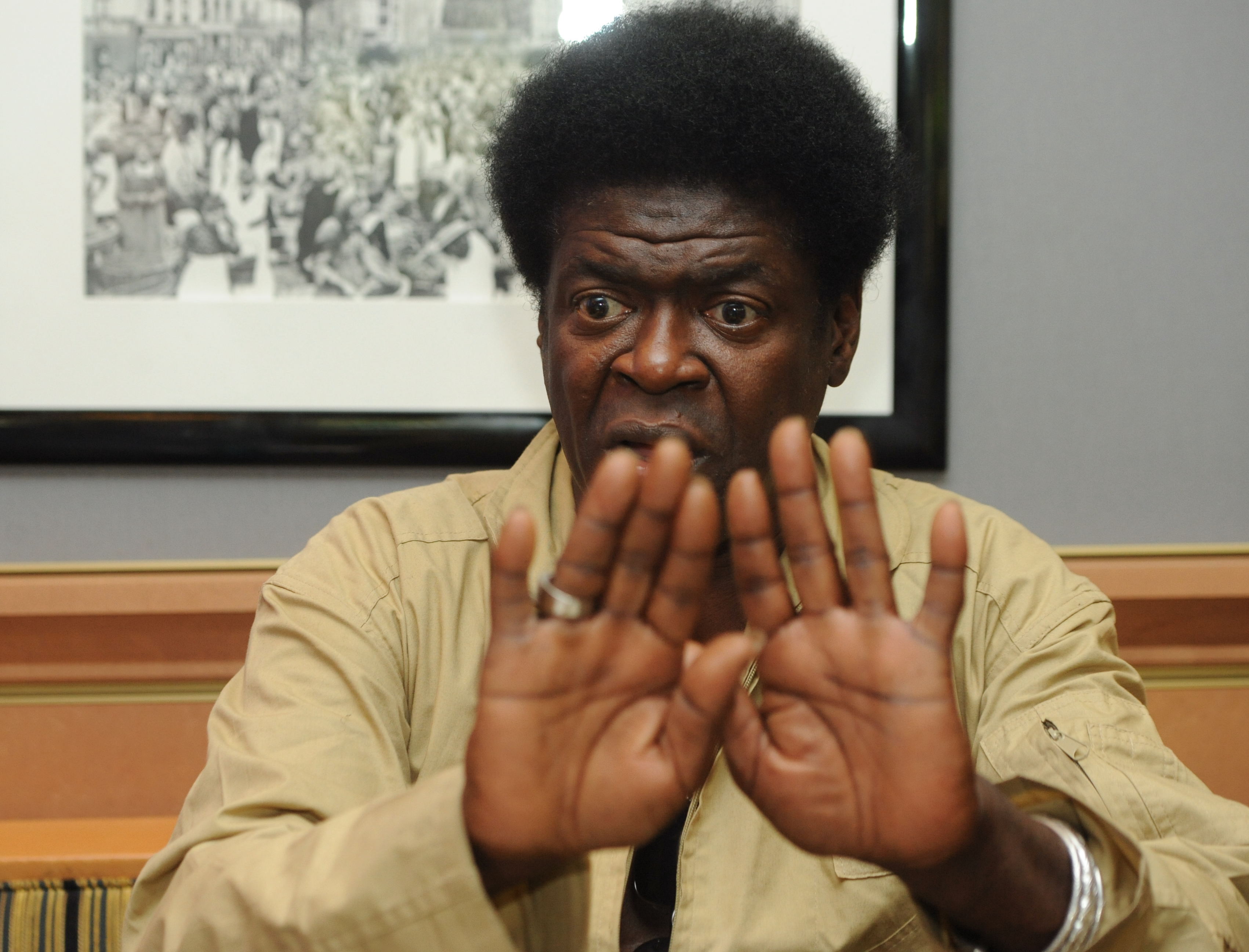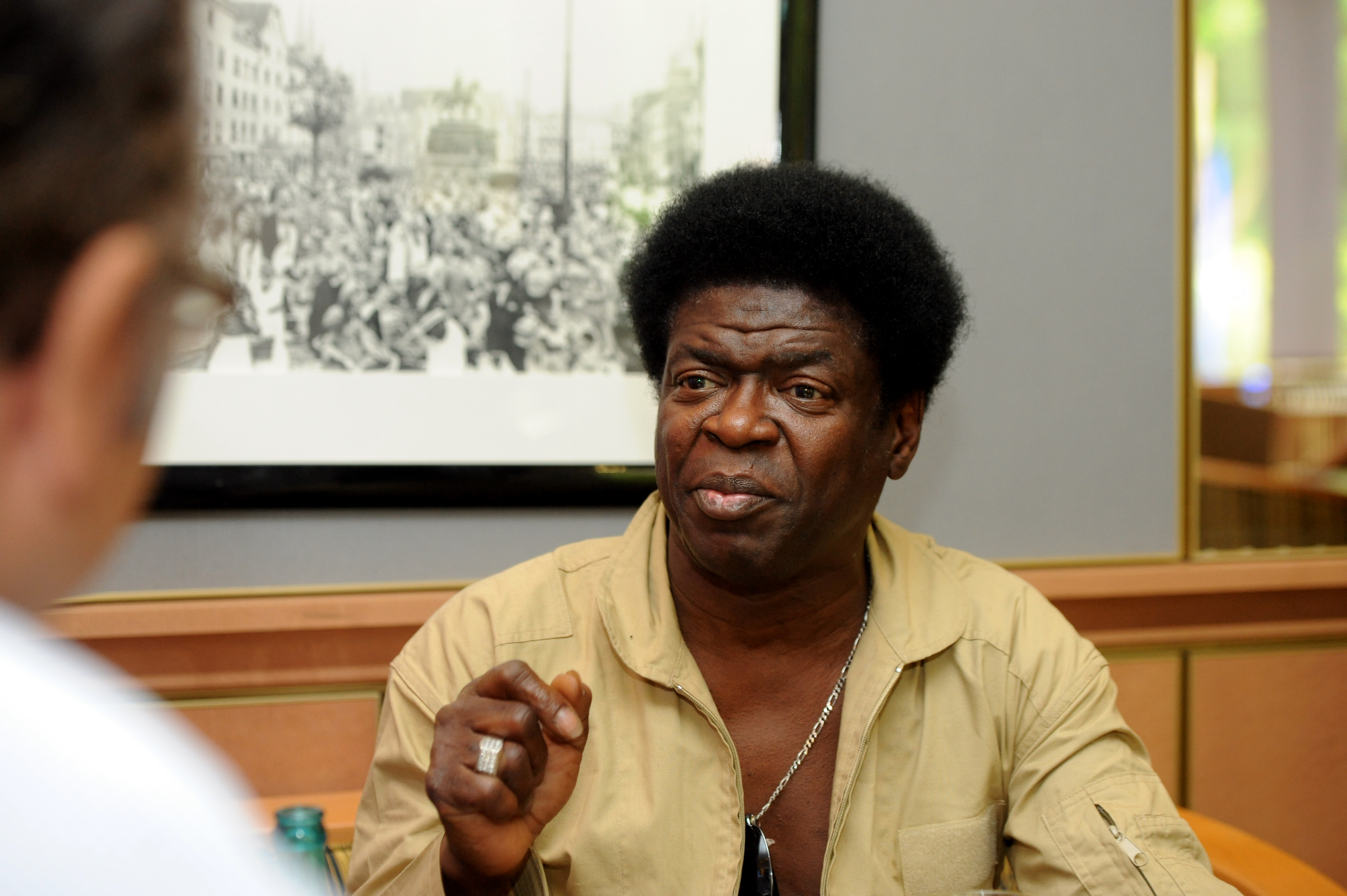 Goldener Overall, den Reißverschluss bis fast zum Bauchnabel geöffnet, an der dicken Silberhalskette hängt die Sonnenbrille. Charles Bradley strahlt wie ein Honigkuchenpferd und kann es kaum fassen, dass sein plötzlicher Ruhm sogar bis nach Europa überschwappt. So gut ging es ihm nicht immer. Im Gegenteil. Charles Bradley hat ein hartes Leben hinter sich, lebte als Tramp zwischen Florida und Alaska, zwischen Kalifornien und New York – immer am Rande der Existenz. Der gelernte Koch, der nach dem Dienst jahrelang als James Brown-Imitator auftrat, gab aber seinen Traum von der eigenen Musikkarriere nie auf. Vor zwei Jahren dann war es soweit: Sein Album „No Time for Dreaming“ (2011) wird in den USA ein Hit, seitdem tritt der 64-jährige Spätkarrierist nur noch vor ausverkauften Hallen auf. Sein neues Album „Victim of Love“ hat das renommierte amerikanische Musikmagazin Rolling Stone schon jetzt zum Album des Jahres erklärt. In seinen Songs, in seiner Stimme schwingt sein Schicksal, seine Verletztheit, sein Herzschmerz mit, aber seine nie versiegte Hoffnung versetzt ihr eine ungeheure Kraft. Mit Charles Bradley sprach Cem Akalin.