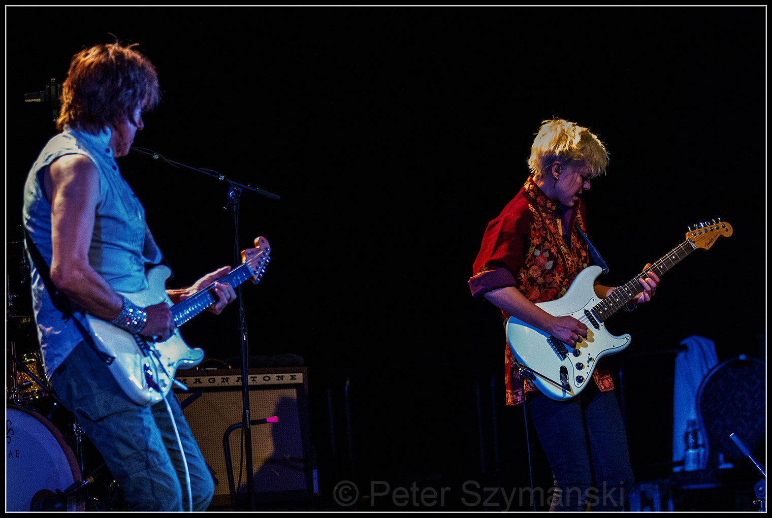 Das wars dann aber auch schon mit der Kritik. „Morning Dew“ von Album „Truth“ kam mit großer Intensität, auf „Even Odds“ ließ der Meister seine rhythmische und spielerische Qualität erkennen. Sehr schön zu hören war hier Becks ungewöhnliches Fingerpicking. Denn der Gitarrenvirtuose spielt ja bekanntlich nicht mit Plektrum, was für Rocker ja eh schon recht außergewöhnlich ist. Seine Fingerspiel ist aber auch verantwortlich für diesen eigenartig sanften Sound, auch wenn es mal heftiger zur Sache geht. Ganz großartig: die Sam Cooke-Nummer „A Change Is Gonna Come“.