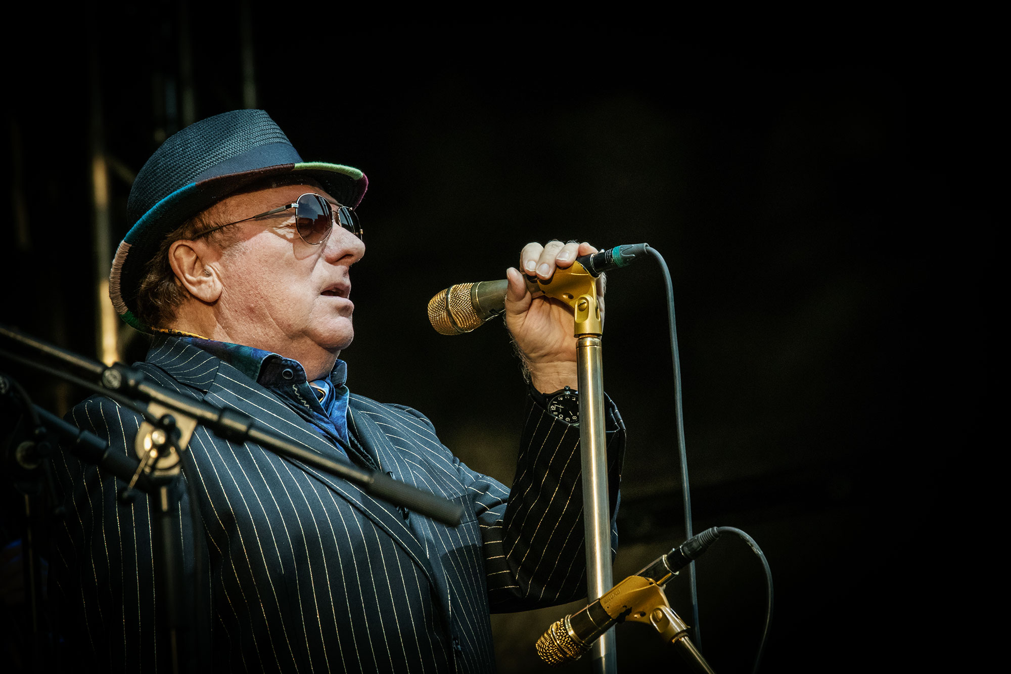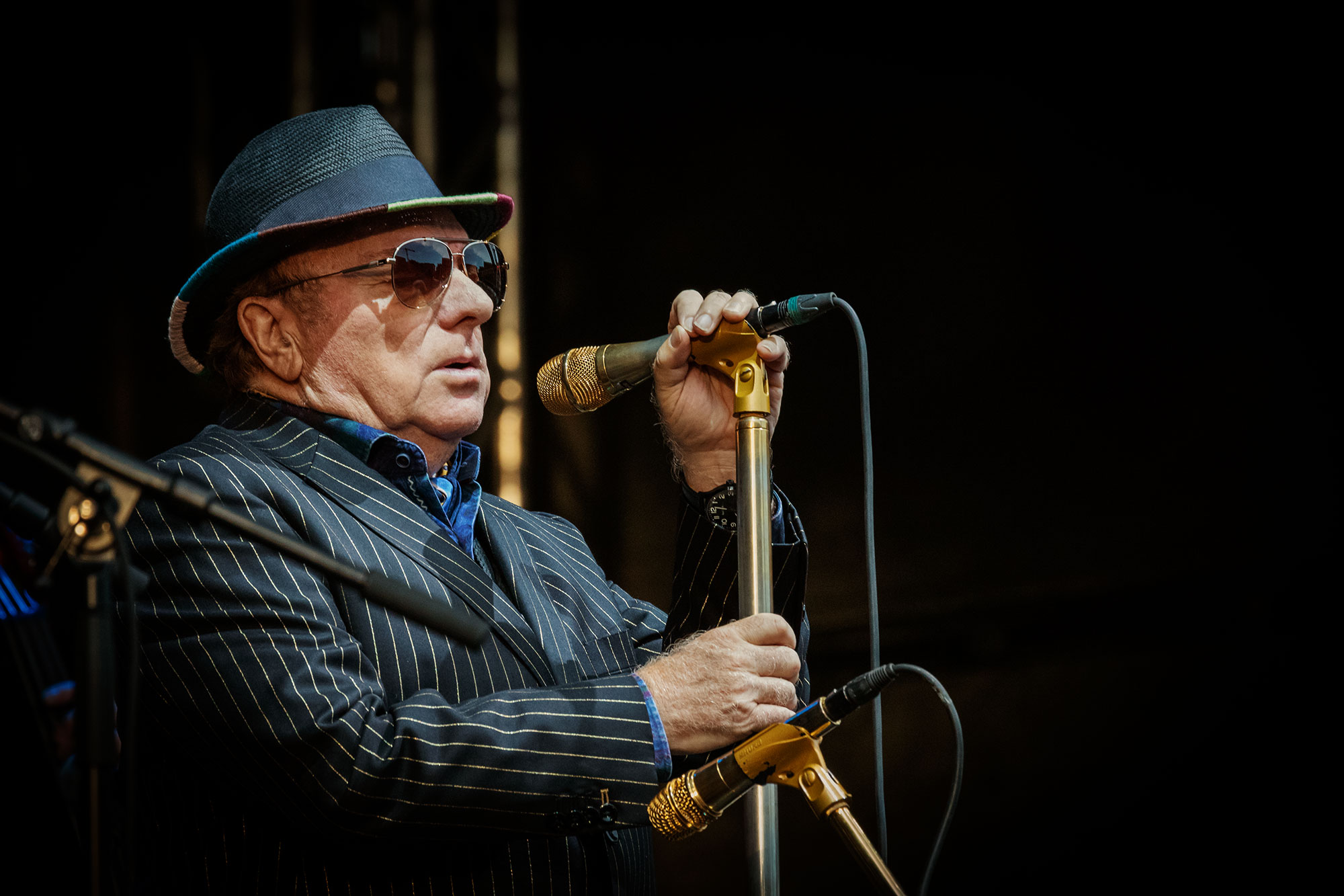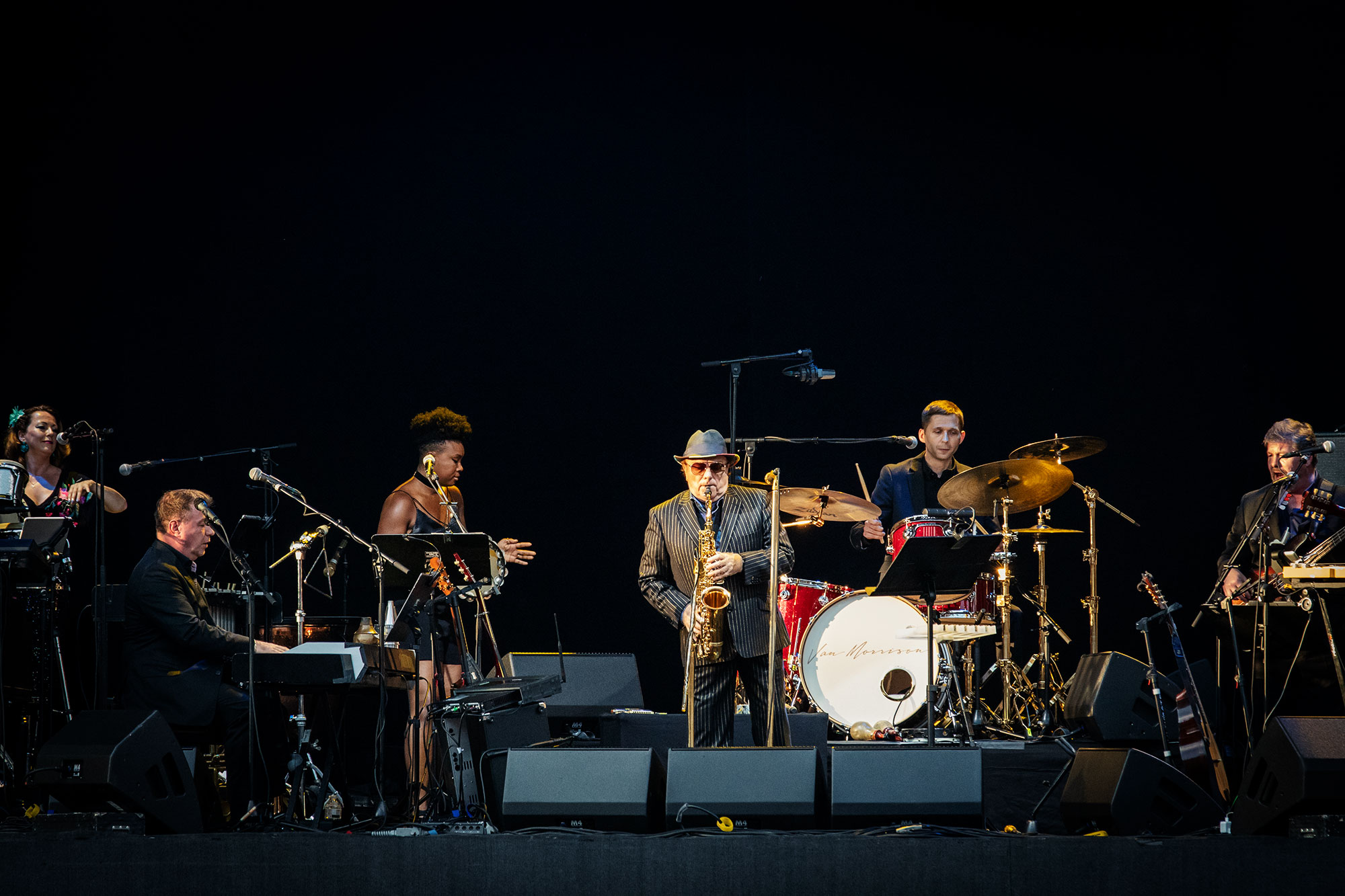 Der Mann mit dem unvermeidlichen Hut hat eine Stimme, die ausreicht, um Gebete eines Verzweifelten hinauszuschreien, um die Klagen eines Verlassenen wie die Essenz eines Einsamen klingen zu lassen. Der Mann hat ein Timing, das sagenhaft ist, und ein Gespür für Harmonien, dass es einen schon mal den Atem anhalten lässt. So wie bei „In The Afternoon“. Ein Song, in dem Van sein ganzes Begehren, seine Lust nach einer Frau bündelt, vielleicht der einzige Song, bei dem dieser Löwe von Belfast in Ansätzen tanzt und sich windet, und der mit einer ausgedehnten Gesangsimprovisation das Highlight des Abends ist.