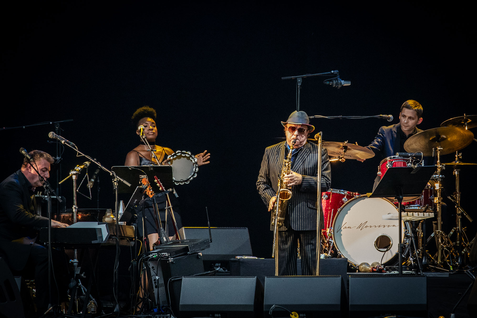 Überhaupt lässt Van Morrison der Band (und dem Publikum) kaum eine Atempause. Jedes Stück geht praktisch ohne Zwischenpause ins nächste über. Morrison wird an diesem Abend nicht lächeln, grüßen oder winken, aber er verschwendet eben auch keine Minute. Er markiert höchstens mal die rhythmischen Akzente mit der Faust, lässt die Harmonika knurren, hat sicher Spaß mit der Lautmalerei. Das, meine Damen und Herren, ist eine Show, und das ist eine ernste Sache!