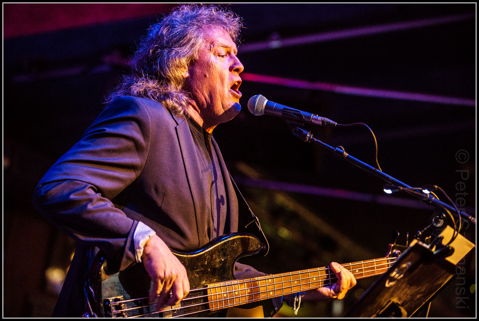 „Kettle“ ist ja schon ein echtes Rockbrett von Colosseum und sicherlich ein würdiger Opener für solch ein Powertrio wie JCM – eine Hommage an den früheren Saxofonisten und legendären Mitmusiker Dick Heckstall-Smith, wie Hiseman später sagte. In der Bonner Harmonie bewies Mark Clarke von Anfang an, dass er eine kraftvolle Rockröhre ist, und Clem Clempson raste praktisch ohne Vorwärmphase in ein sehr wahwah-betontes Solo. JCM sind ein Musikkraftwerk. Das sollte wohl die Botschaft sein. Die Dinosaurier des Jazz-Rock haben ihre Tour ja nicht ohne Grund „Heroes“ genannt – auch wenn die Musiker damit ihre eigenen Helden meinen. Eine Verneigung vor all den vielen Weggefährten. Und gerade Clempson und Clarke hielten das Banner jedenfalls das ganze Konzert über hoch. Jon Hiseman indes schien an diesem Abend leicht angeschlagen.