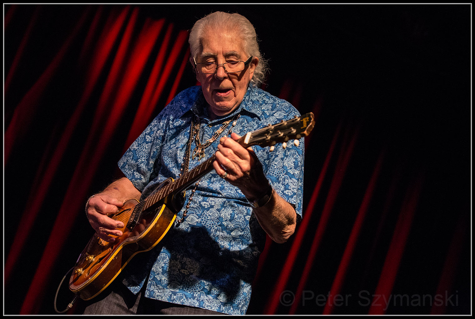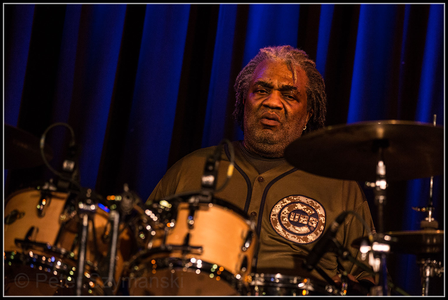 Nach dem eher ruhigen „Special Life“, auf dem Rzab ein ziemlich überzeugendes Basssolo spielte, kam „Dancing Shoes“ („Padlock On The Blues“,1999), ziemlich jazzig rüber. „Early In The Morning“ („Along For The Ride“, 2001), dessen Refrain vom Publikum eifrig mitsang, hatte auch ein paar eher skurrile Momente: Mayall mochte hier nicht unbedingt an der Gitarre überzeugen. Das machte er aber bei „Chicago Line“ (1988) mit der Harp wieder wett – für mich das Highlight des Abends.