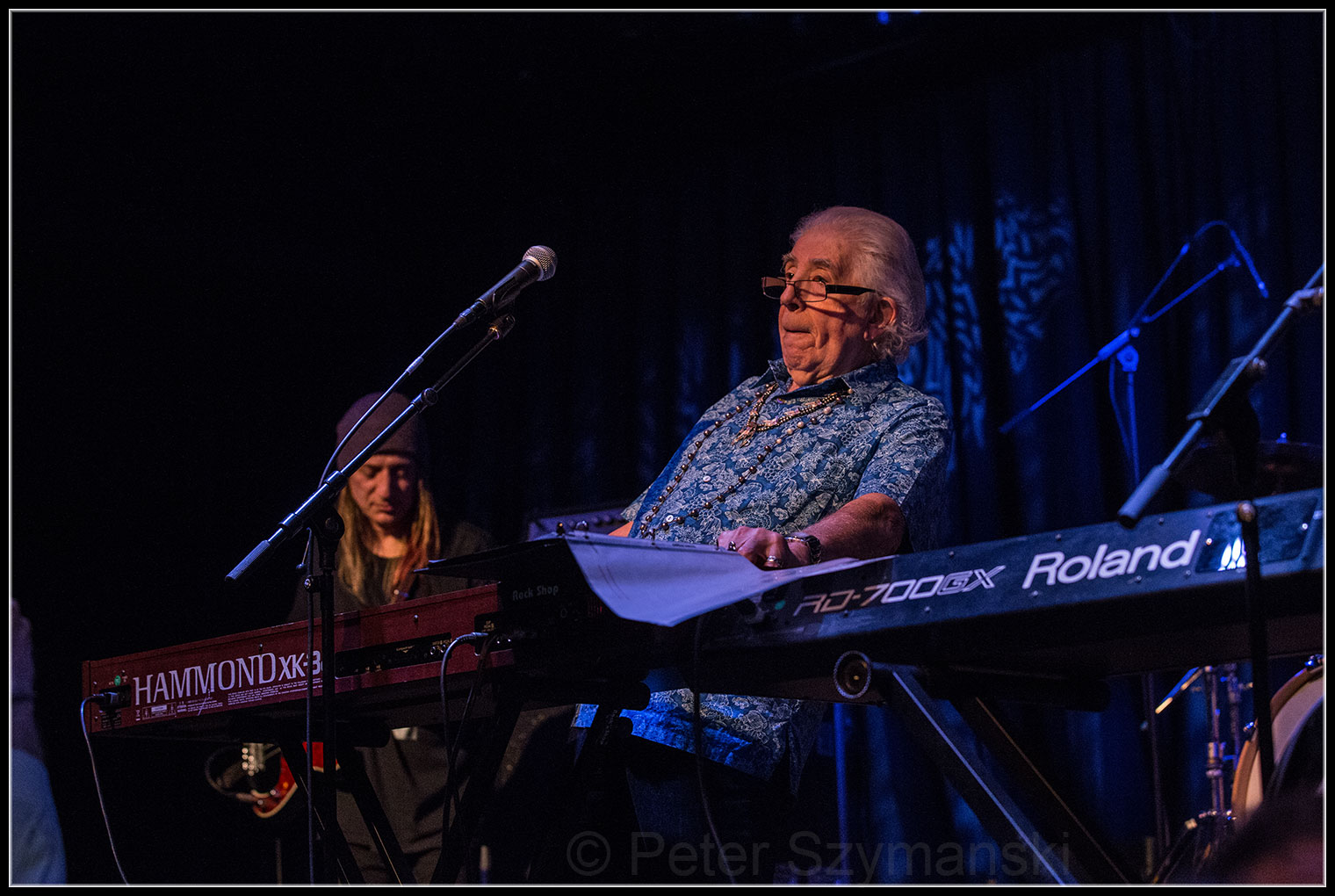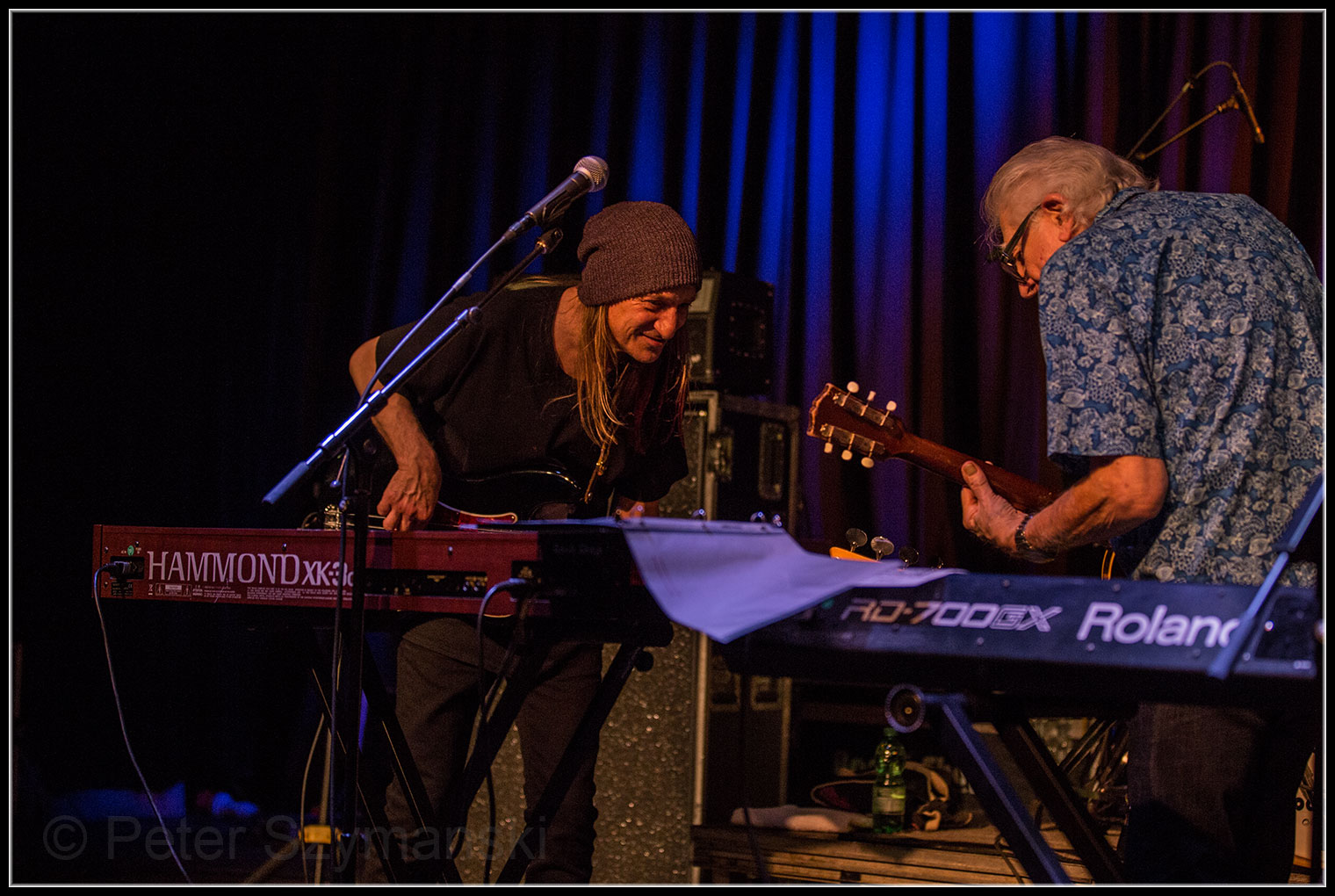 John Mayall, der Godfather des weißen, britischen Blues, zieht immer noch. Die Kölner Kantine ist brechend voll, die Leute stehen und sitzen bis ins Treppenhaus. Seit mehr als 50 Jahren ist der Mann im Dienste des Blues unterwegs, zuletzt habe ich ihn 2006 in der Bonner Harmonie mit dem fantastischen Gitarristen Buddy Whittington gesehen. Und davor 1997 bei den Leverkusener Jazztagen, wo er fulminant aufspielte, Ende der 1970er Jahre in Bonn, wo wir vor Ehrfurcht fast niederknieten, dann einige Male in der Bonner Biskuithalle. Mayall ist jetzt 83 Jahre alt, und die Jahre sind nicht spurlos an ihm vorübergezogen.