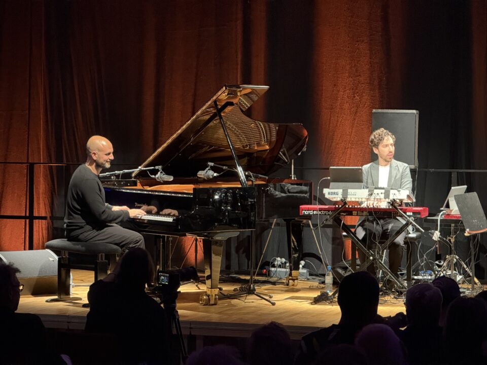 Schon der Auftakt mit „Vertigo“ setzt die Koordinaten dieses Abends: ein kreisendes Motiv, das sich allmählich verdichtet, während Maestro zwischen akustischem Klavier und subtil eingesetzten Electronics changiert. Lehavi agiert dabei weniger als zweiter Pianist denn als Erweiterung des klanglichen Spektrums – mit schimmernden Flächen, Echos und Gegenlinien, die sich wie Schatten um Maestros Motive legen.