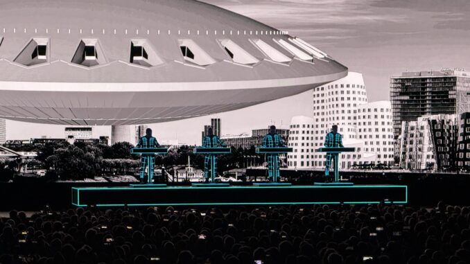 Roboterstimme, Zahlenästhetik, stoischer Puls: Kraftwerk verwandeln die Mitsubishi Electric Halle in Düsseldorf in ein digitales Versuchslabor. Zwischen „Computerwelt“, „Autobahn“ und „Die Roboter“ entfaltet sich kein nostalgisches Best-of, sondern ein streng konzipiertes Gesamtkunstwerk, das Musik, Bild und Gesellschaft neu vermisst – kühl, präzise und überraschend gegenwärtig.
