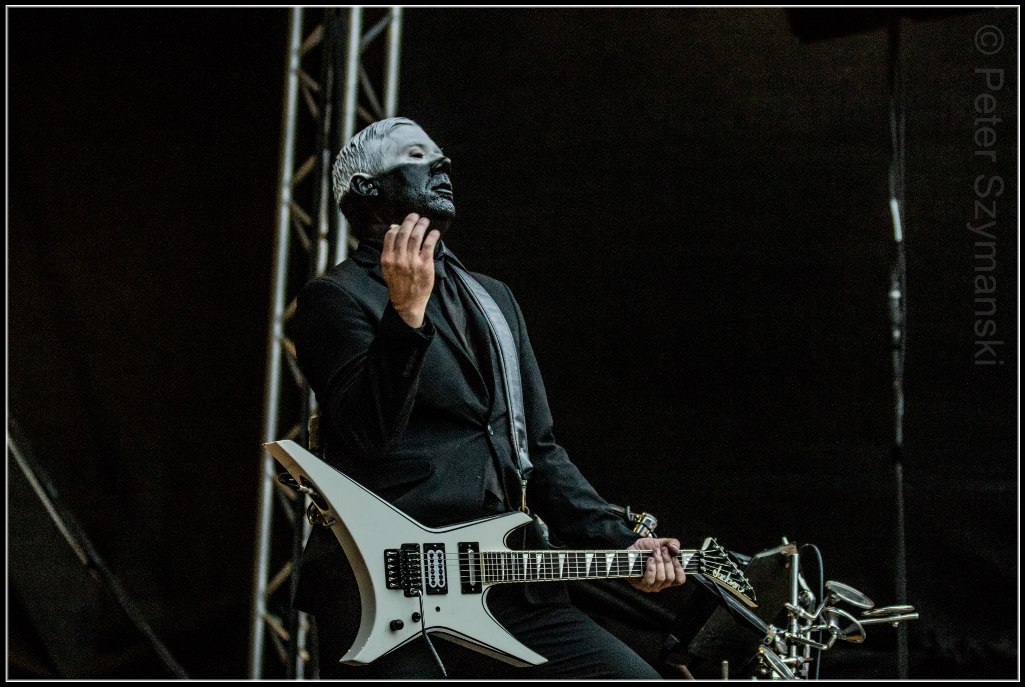 Wes Borland sägt an seiner Gitarre. Die Gesichtszüge sind nicht zu erkennen. Die obere Hälfte des Kopfes ist komplett weiß, alles andere schwarz. Er trägt schwarze Kontaktlinsen und sieht wieder aus, als wäre er von einem anderen Planeten. Oder ein Roboter. Was auch immer durch seinen Kopf gegangen ist, als sich der schweigsame Exzentriker für diese Maskerade entschied – er ist jedenfalls immer für eine Überraschung gut.