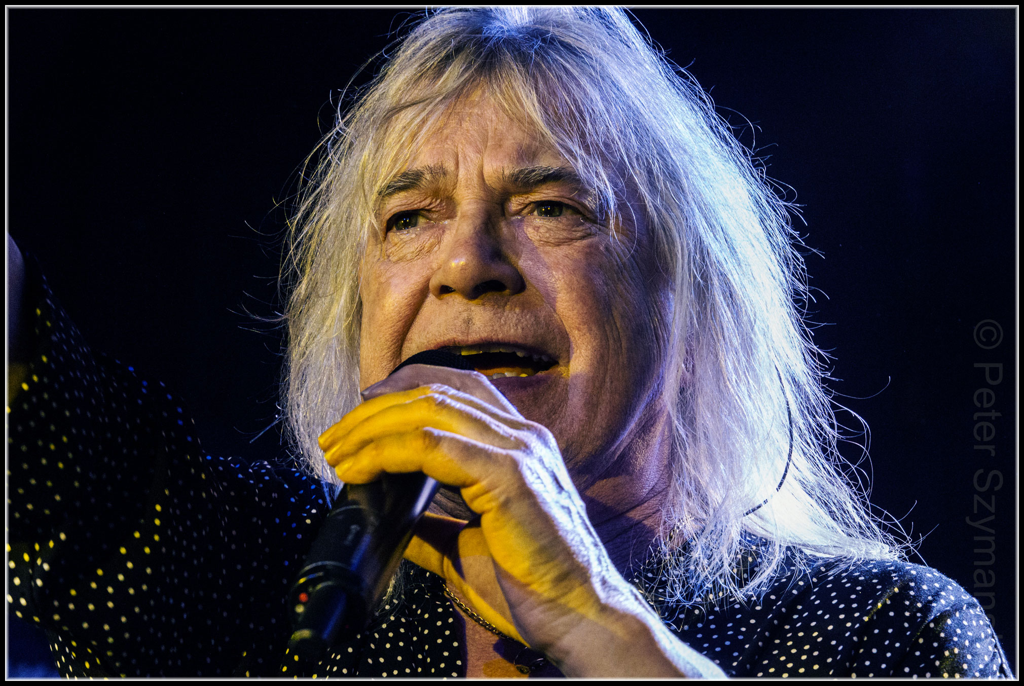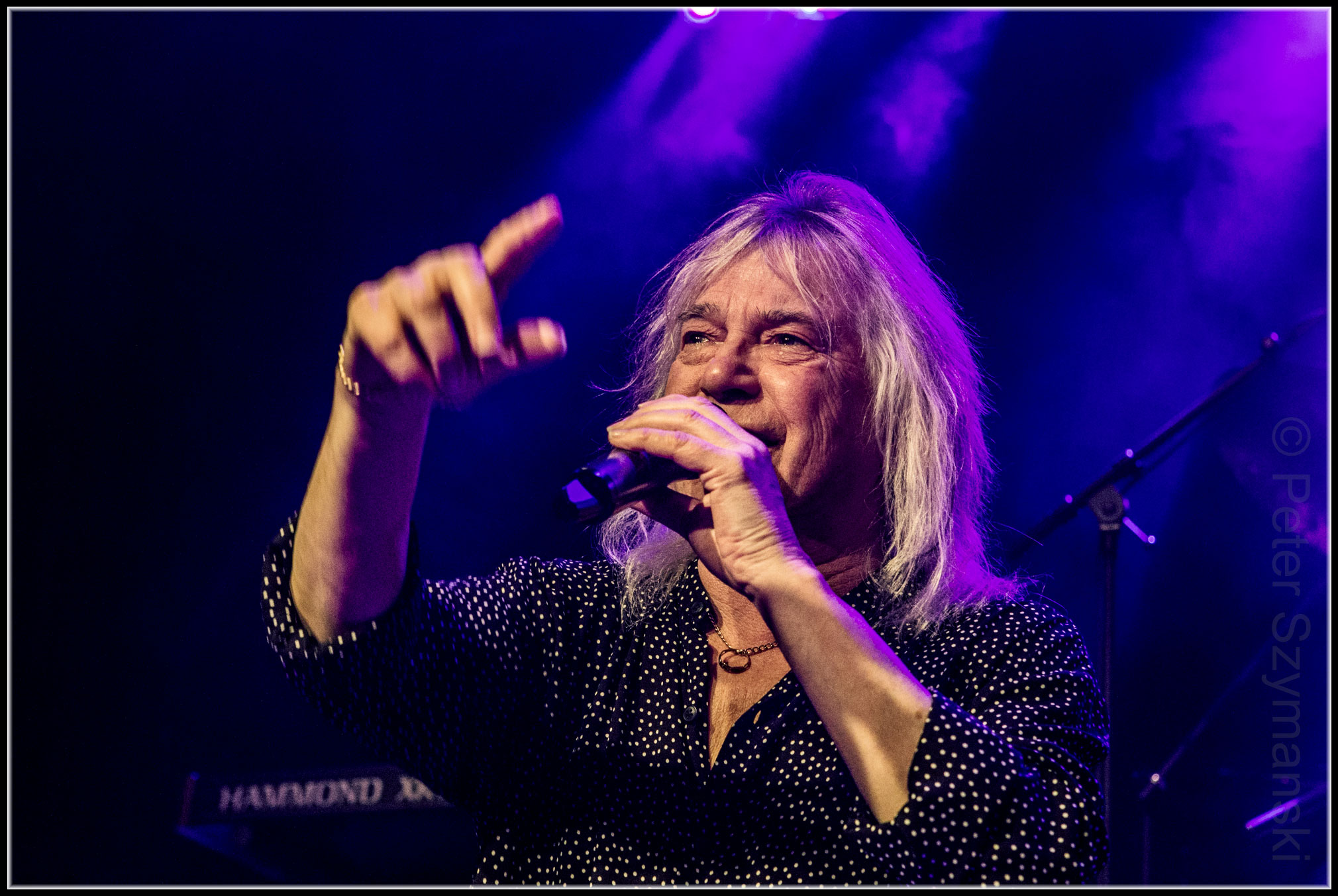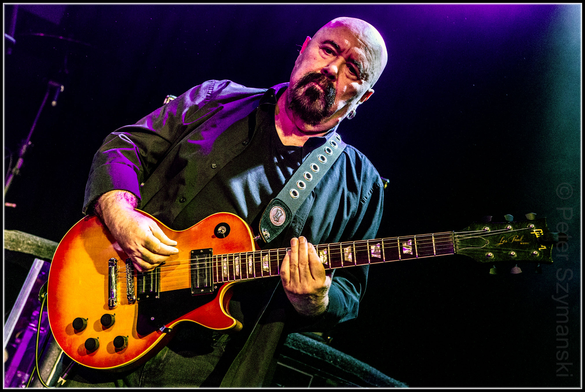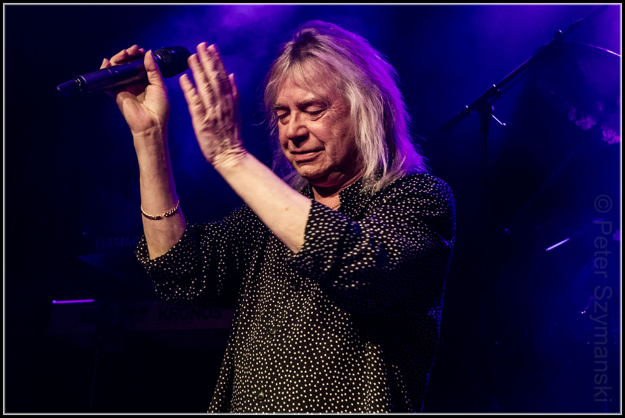 Die Briten haben sichtlich Freude an ihrem Auftritt. Keyboarder Rick Benton ist neu dabei, er singt im Hintergrund jedes Stück mit und tanzt an seinen Tasten mit einem ewig lächelnden Gesicht. Schlagzeuger Lee Morris ist ebenfalls neues Bandmitglied. Mit Bassist Al Barrow ist er bei jedem Takt mit Elan dabei. Einzig was in Gitarrist Tony Clarkin, der bekanntlich ja seit Jahrzehnten alle Stücke der Band schreibt, ist nicht aus seinem Gesicht zu lesen. Der 71-Jährige absolviert sein exzellentes Spiel an seinen Gitarren ohne äußerliche Regung – wie immer. Nicht mal bei seinem einzig langen Gitarrensolo bei „How Far Jerusalem“ zuckt es in dem bärtigen Gesicht. Was soll`s. Der Mann hat einen genialen Sound an den Gitarren, schafft Soundcollagen, schüttelt mythische Rockriffs aus dem Ärmel und flitzt technisch sauber mit den Fingern über die Saiten.
