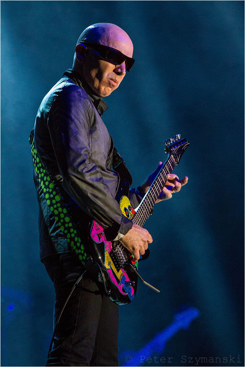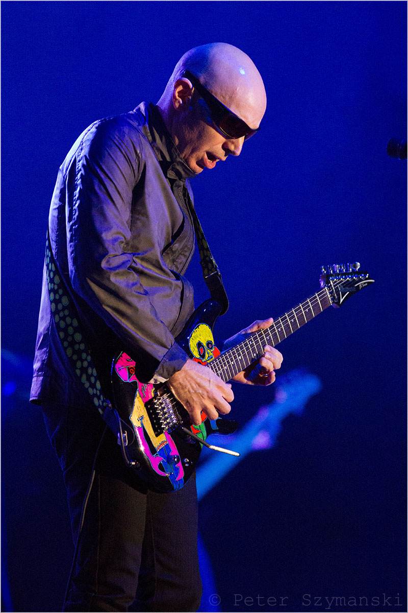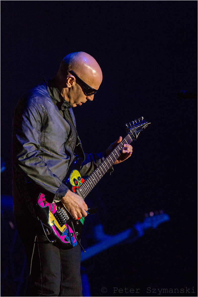 Seine Gitarre erscheint auf der Bühnenleinwand als Komet, mit dem der Meister in einer Supernova verschmilzt. Er und seine geliebte Ibanez-Gitarre werden eins und leuchten als fantastischer Himmelskörper. Natürlich eröffnete Joe Satriani sein Konzert im Bochumer Ruhrcongress mit dem Titelstück seines aktuellen Albums „Shockwave Supernova“, entführte die Fans aber sogleich nicht nur visuell durch ein Wurmloch in seine Vergangenheit: „Flying in a Blue Dream“ und „Ice 9“ aus dem nach wie vor erfolgreichsten Rock-Instrumental-Album „Surfing with the Alien“ aus dem Jahr 1987.