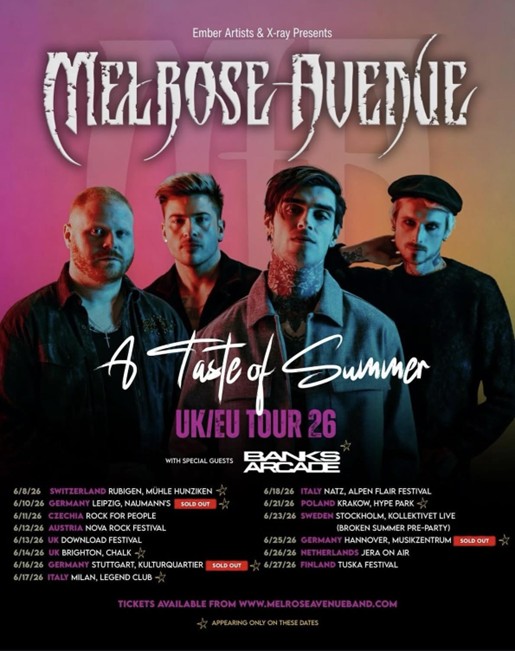 Beeinflusst vom Heavy-Rock/Metalcore-Sound von Bring Me the Horizon, Memphis May Fire und Papa Roach, können sich Fans auf einen Adrenalinrausch freuen, den Melrose Avenue ihnen beschert. Die Band besteht aus Sänger und Songwriter Vlado Saric, Gitarrist Mitchell Black, Schlagzeuger Jed McIntosh und Gitarrist und Backgroundsänger Shawn „Red Curl“ Mayer (was für ein genialer Spitzname, oder?!). Ihr individuelles Talent macht sie unbestreitbar zu einer unaufhaltsamen Kraft, die sich stetig eine treue Fangemeinde und ansteckende Aufmerksamkeit in den sozialen Medien sichert. Melrose Avenues nahtlose und dynamische Mischung aus melodischem Popgesang und der Härte des Metal macht sie zu einer Band, die man im Auge behalten sollte und deren Karriere rasant an Fahrt gewinnt.