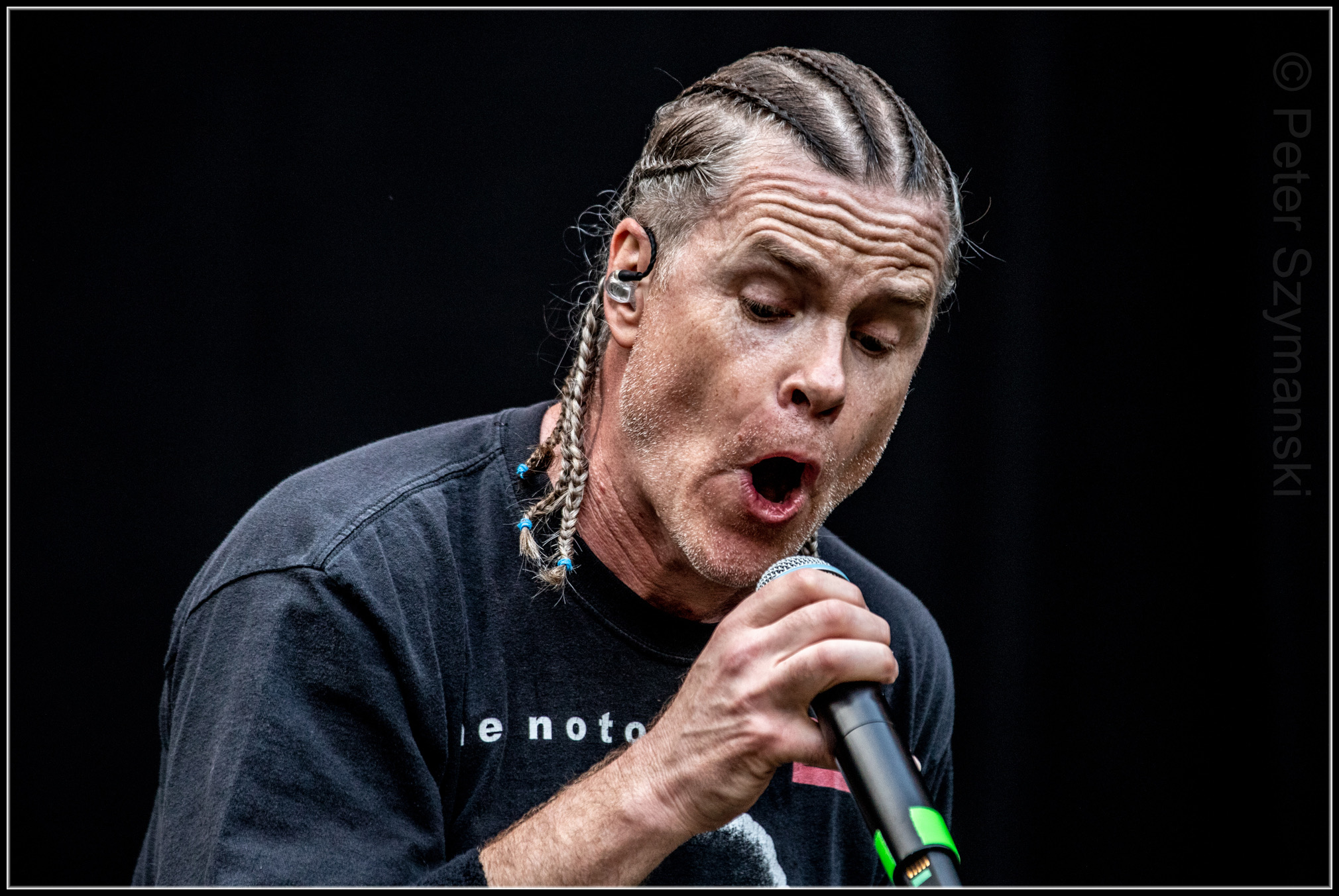 „I Like To Move It!“ John Connor kommt mit dem Reel 2 Real-Song auf den Lippen auf die Bühne und liefert eine Rap-Einlage noch bevor seine Musiker überhaupt an ihren Instrumenten sind. Der Mann mit dem Wahnsinn eines Ozzy Osbourne und eines Wingsuit-Athleten in den Augen verliert keine Sekunde. Der Mann will! Und der Mann kann! Das T-Shirt signalisiert schon, wie es um ihn steht. „Ready To Die!“, heißt es auf dem Notorious B.I.G.-Shirt. Connor springt, schreit, singt, hüpft, spritzt mit einer Wasserpistole in die Menge und klettert am Ende über die Absperrung und steht mitten in der Meute.