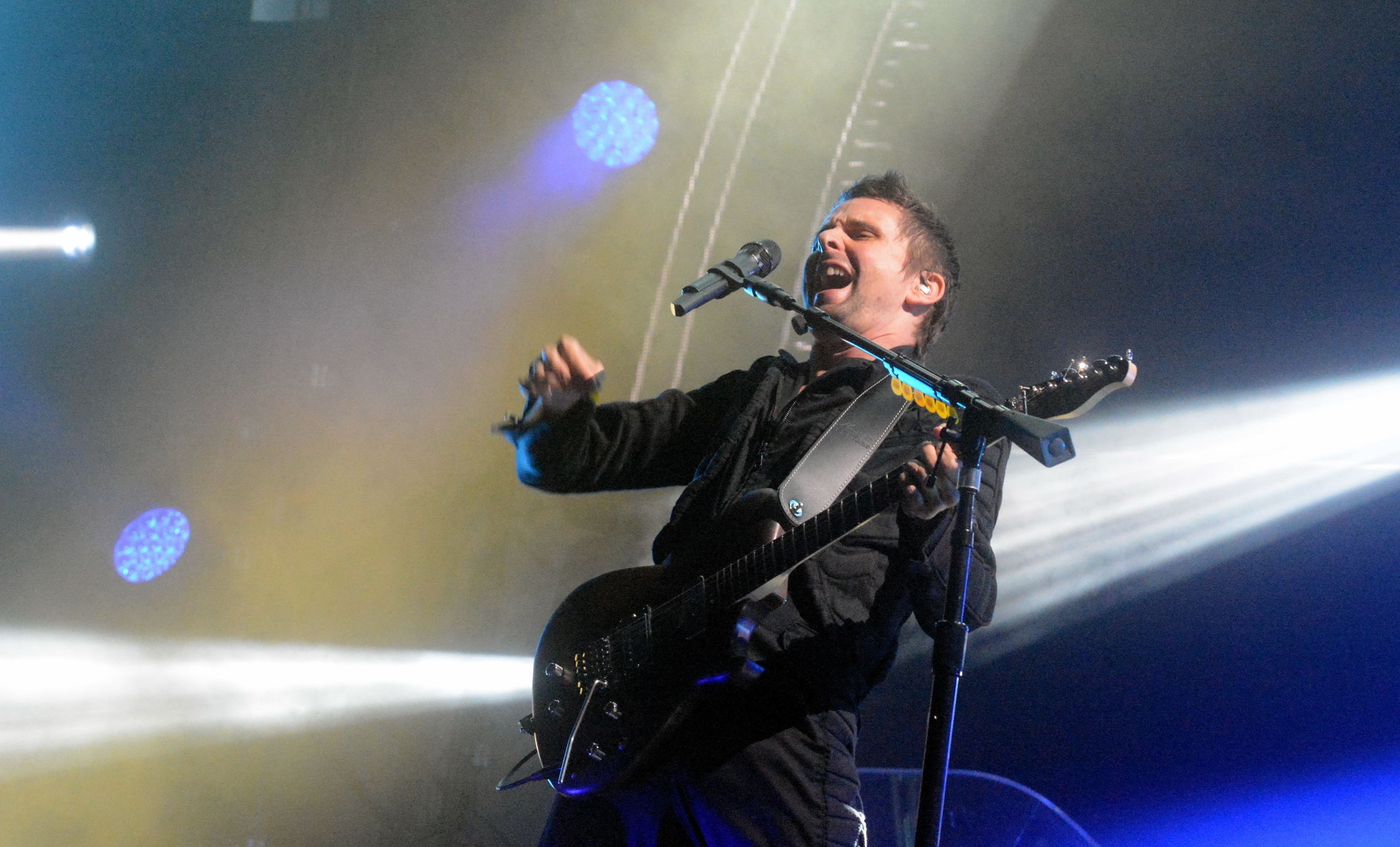 Und dann der große Auftritt von Muse. Diese durchinszenierte Show, getragen von einer Flut von vorwiegend schwarz-weiß bestimmten Bildern, Filmsequenzen, unterstützt von theatralischen weißen Lichtkegeln, wird wohl keiner so schnell vergessen: die roten und weißen Papierschlangen, die vor der dunklen Bühnenkulisse plötzlich in den Himmel schossen, die überdimensionalen schwarzen Bälle, die wie aus dem Nichts, wie mysteriöse Eier über dem Publikum hinwegschwebten. Dazu diese überragende musikalische Fähigkeit des Trios mit einem schon fast beängstigend präsenten Matthew Bellamy, der eine so unfassbare Gesangsqualität besitzt, aber auch an der Gitarre ein kreativer Virtuose und experimentierfreudiger Klangkünstler ist. Muse bedienen sich bei ihrer Musik aus allem, was die kreative Spezies geschaffen hat: Strukturen aus der Klassik, Rhythmen aus dem Progressive Rock, die musikalischen Gebärden des emotionalen Pop und die weiten Landschaften der cineastischen Soundtrack-Welt. Da werden Queen, Oasis, Prince, Radiohead und Rush mit jeder Menge eigenen Amalgamanteilen zu einer völlig neuen Kunstform verschmolzen, das kann mal metallhart und wütend, mal melancholisch und hymnisch klingen. Auf keinen Fall langweilig und abgedroschen. Muse sind sicher noch längst nicht am Zenit angekommen.