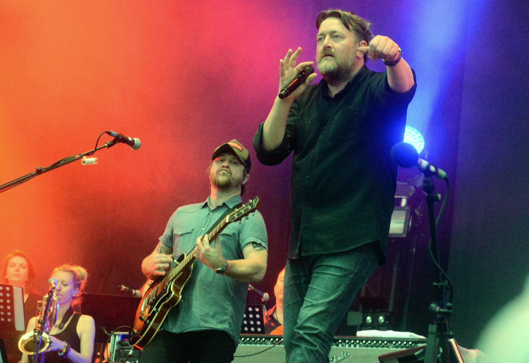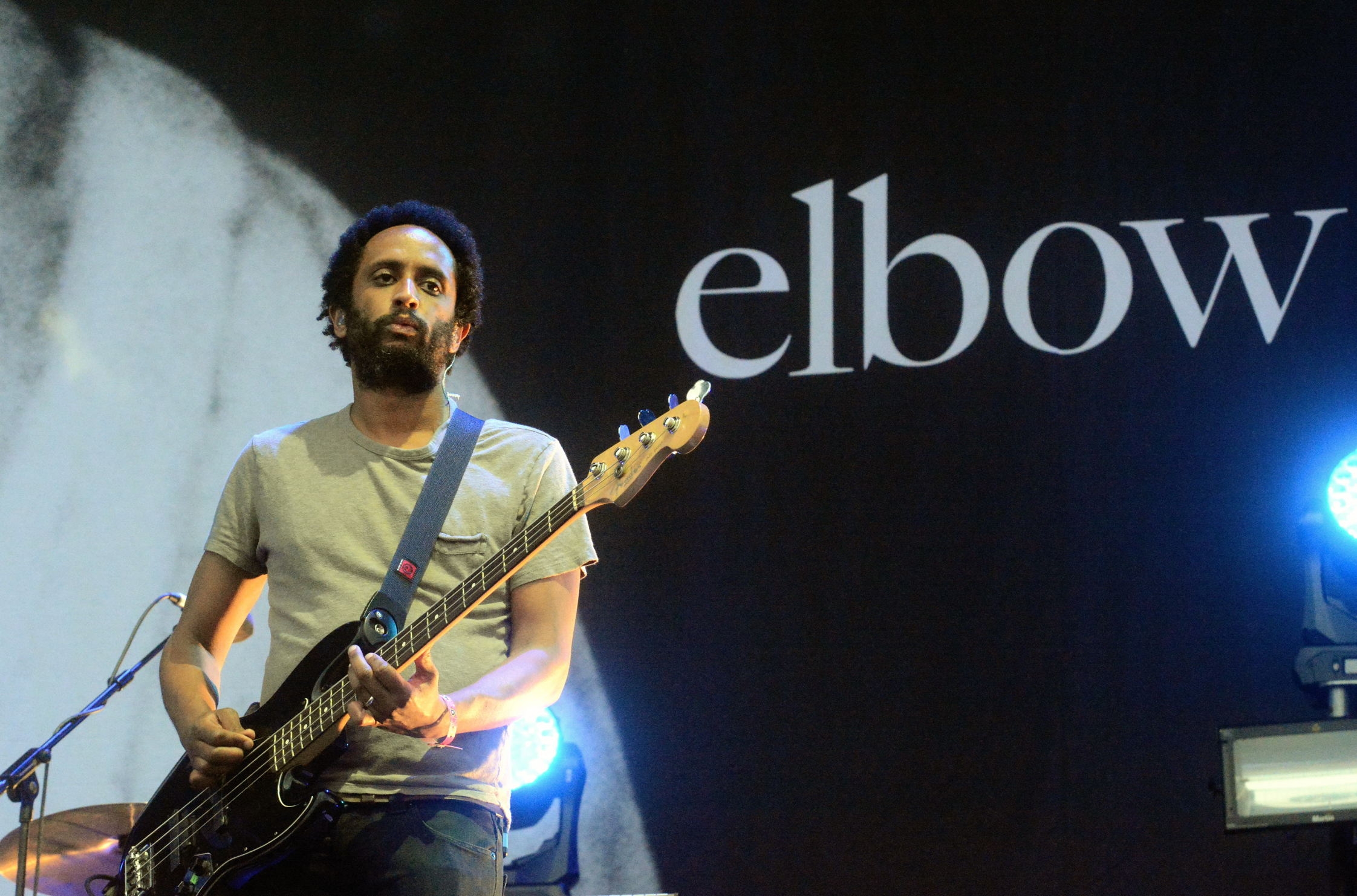Ganz anders ging es bei Elbow auf der großen Bühne zu. Elbow – das ist Musik, die irgendwie gar nicht von dieser Welt scheint. Schon diese zarten, verträumten, manchmal auch ein wenig rätselhaften Texte zu dieser völlig entschleunigten Rockmusik. Die Zeit bleibt stehen, wenn Guy Garvey mit seiner Band die Bühne betritt. Und es spricht für seine Begeisterung und die von Mark Potter (Gitarre), Craig Potter (Keyboard), Pete Turner (Bass) und Richard Jupp (Drums), dass sie sich nicht lumpen lassen und mit großer Bandbesetzung auftreten. Echte Streicher, echte Bläser. Keine Sequenzer, kein doppelter Boden. Wie zauberhaft das dann klingt, zeigten sie mit ihrem Opener „The Birds“. Oder beim von Streichern getragenen Song „One Day Like This“, ein Lied voller Zuversicht und Sonne… Auch „Fly Boy Blue / Lunette“ ist so ein Stück, das so voller liebevoller musikalischer Details ist, und dann dieser zartfühlende Gesang von Guy Garvey – das ist ganz großes Kino.