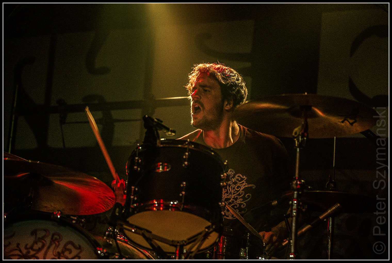 Marius Tilly hatte es wohl auch nicht ganz so leicht, einen Konzertabend zu eröffnen, zu dem mit Pristine und The Brew gleich zwei Schwergewichte der harten Bluesrockszene auftreten sollten. Und so musste das Trio erst noch in einer noch nicht richtig gefüllten Kantine starten. Tilly begann sein Konzert auch durchaus ambitioniert und vielversprechend, verlor sich dann doch im Mittelteil mit teils zu hektischen, nicht ausgereiften Soli. Der Mittelteil des Auftritts hinterließ somit auch keinen bleibenden Eindruck. Indes ist das Trio eins mit Potenzial: Mit Benjamin Oppermann (Bass) und Maximilian Wastl (Drums) verfügt Tilly mehr als nur eine grundsolide Rhythmusgruppe. Die beiden sind eine feste Burg, unerschütterlich, voller Spielfreude und bereit immer die Songs voranzutreiben.