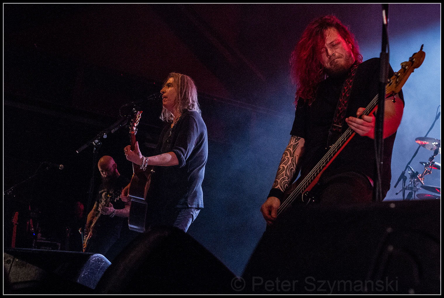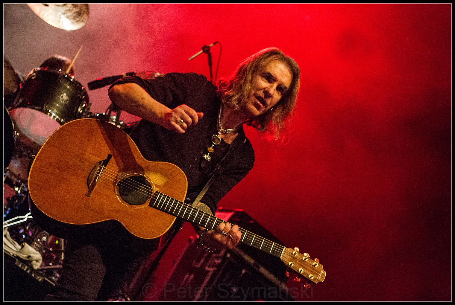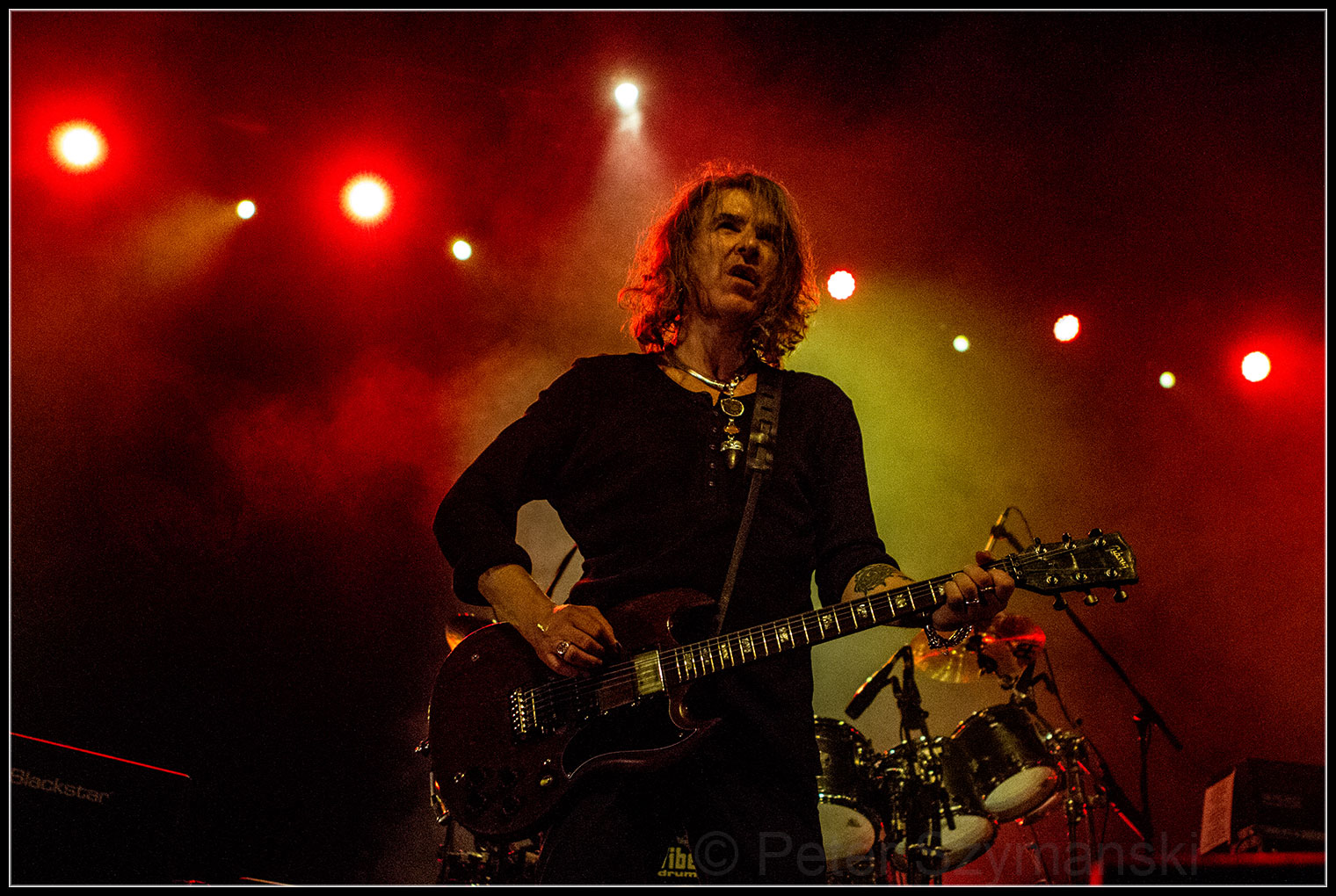 Die dunkle Bühne ist in rotes Licht gehüllt, sphärische Musik kündigt die Briten an, die mit ihrem Opener gleich zum Niederbrennen der Schlösser aufrufen. Sieben Stücke aus ihrem genialen aktuellen Album „Winter“ bringt die Band bei ihrem gut zweistündigen Konzert, und „Burn The Castle“ ist eines der zentralen Aussagen des düsteren Werks. Sullivan hat ganz offensichtlich die Schnauze voll von den Hofschranzen, die Politik und Wirtschaft in ihren Händen halten und nach ihren Vorstellungen formen. Schmeichelei und Heuchelei, Intrigantentum und Demütigungen, Verleumdungen, Verlogenheit und Blindheit gegenüber dem, was um uns geschieht, das alles betrachtet der 60-Jährige voller Abscheu. Sullivan schreit es raus, aber nicht mit dem Zorn eines Amokläufers, sondern eines, für den nicht einmal die Sterne Orientierung geben („Drifts“), die eines Verzweifelten, der wie in einem Traum durch die Straßen läuft, wo Gewalt, Exzesse und Gleichgültigkeit herrschen. „Ich schreie vor Wut auf die Götter des Schicksals“, heißt es in „Fate“, das so aktuell ins Programm passt wie „White Light“ (The Love of Hopeless Causes, 1993), den Sullivan mit melancholisch-treibender Kraft singt.
