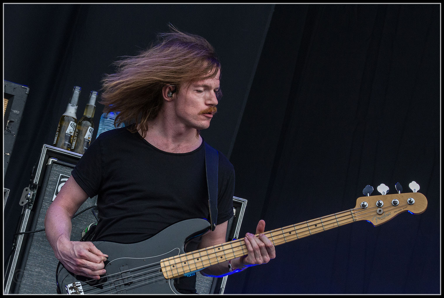 Schon diese überdimensionalen bunten, altmodisch anmutenden Lampenschirme, die vom Zirkuszeltdach herunterhängen! Süßlicher Duft liegt in der Luft, The Ten Bells rocken die Brightlands Stage zur Eröffnung. Auch wenn die Band sich nach einer berühmten viktorianischen Kneipe in London benannt hat, es sind Holländer. Mit ihrem leicht punkig angehauchten Garage-Blues-Rock, der durchaus auch den Arctic Monkeys gefallen dürfte, sorgen die sympathischen Rocker am frühen Samstagnachmittag schon für tanzbare Grooves, die manchmal durchaus in Richtung Punk-Funk-Rock gehen. Eine tolle Live-Band.