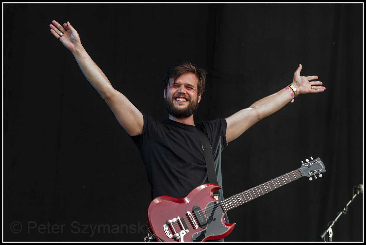 Was soll man zu den Kaiser Chiefs noch sagen? Was für eine Liveband! Und Ricky Wilson ist ein glänzender Unterhalter, ein Frontmann, den sich jede Band wünscht. Gesanglich auf dem Punkt und ein Rockmusiker, der alles gibt. Er rast von Bühnenseite zu Bühnenseite, als würde er Kilometergeld bekommen, heizt die Menge an, springt zur Gaudi der Menge auf den Kamerawagen vor der Bühne und lässt sich kutschieren. „Never Miss a Beat“, die Single aus dem dritten Album „Off with Their Heads“ (2008), ist ja mit seinem treibenden Beat auch ein Song, der sich als Opener eignet. Und das Publikum geht vom ersten Takt an mit. „Everything is Average Nowadays“ spricht vielen sicherlich aus der Seele. Durchschnitt ist die Band aus Leeds sicherlich nicht. „Na Na Na“ bietet sich natürlich für den Chorgesang des Publikums an, und zum Schluss gibt es noch den eingängigen Song „Oh God.“