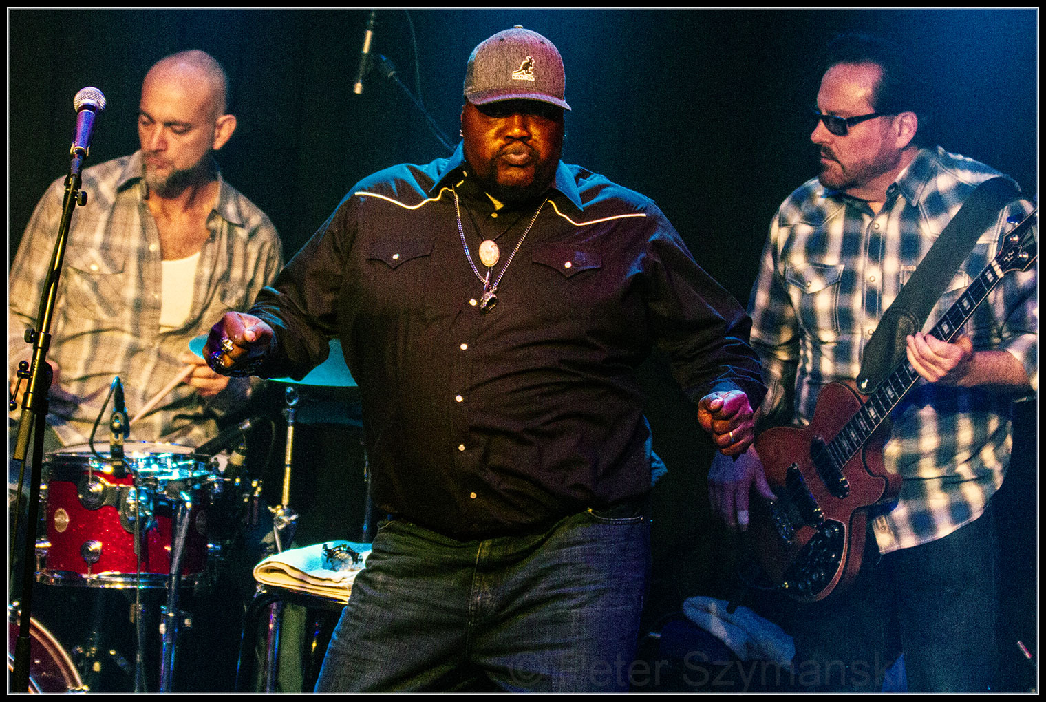 Sugaray Rayford verfügt nicht nur über eine sagenhaft kraftvolle Stimme, für die er nicht mal ein Mikro braucht, sondern auch über ein unglaubliches Unterhaltungstalent. Der schwergewichtige Sänger mit den schwungvollen Hüften kündigte ja schon früh an, dass das nicht einfach nur ein Konzertabend, sondern eine große Party werden würde: „Shake it, Baby!“ Und so eroberte er das Publikum ohne Umschweife mit dem Opener „Try To Make a Living“ im Sturm – eine mitreißende Version des Koko Taylor-Stücks.