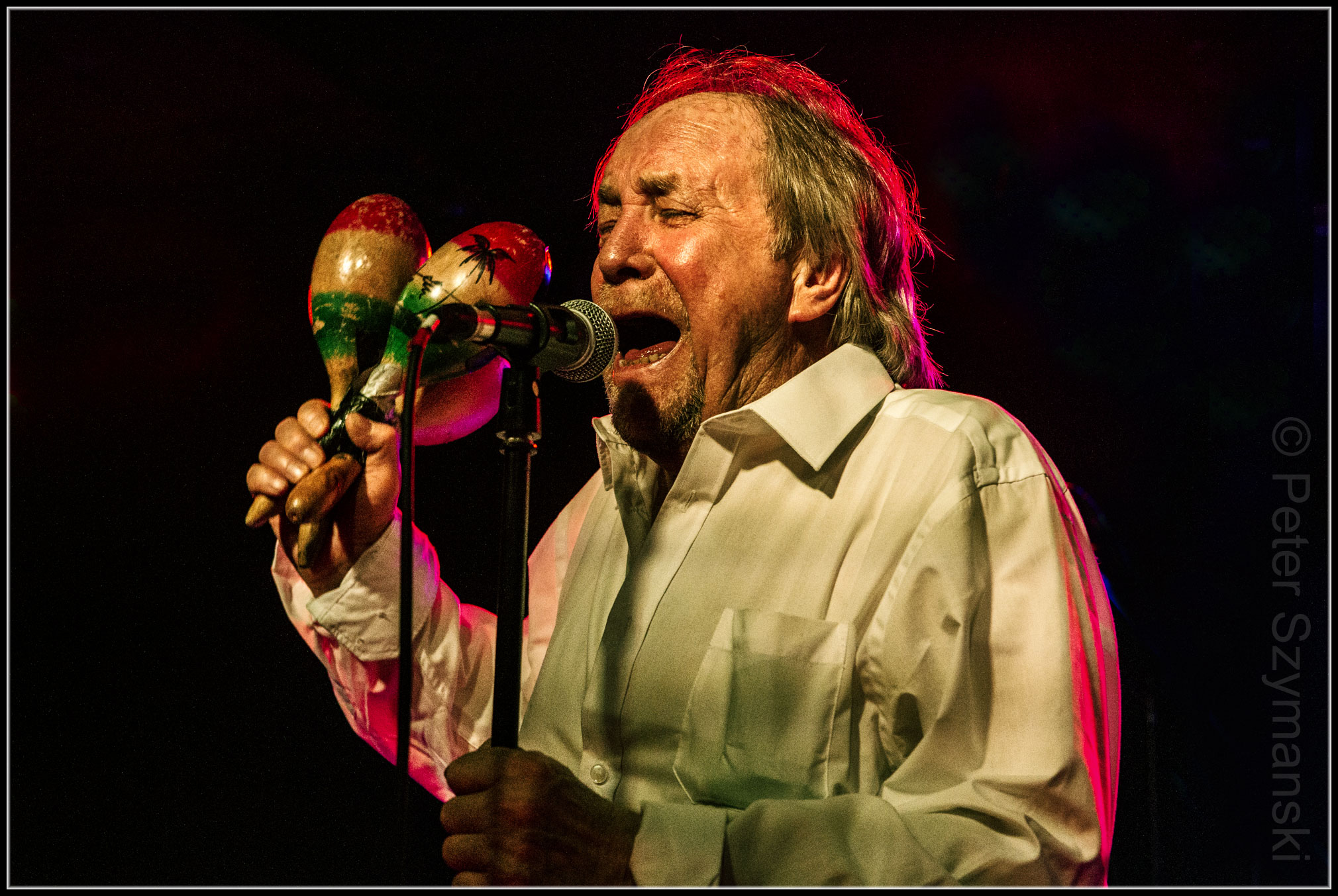 Und auch Phil scheint in seinem Element zu sein. Er strahlt einen zurückhaltenden Charme aus, während er zwischen Maracas und Tamburin wechselt, während er ruhig mit seiner 55-jährigen Band groovt.