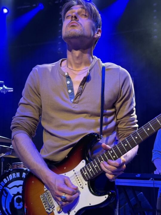 Mit einem grollenden, fast unheilvollen Klang beginnt „Never Givin’ In“ – Joachim Svensmark streicht den Gitarrenhals mit dem Bogen, bis der Ton sich zu einem düsteren Dröhnen verdichtet. Dann setzen die Drums ein, und das Riff entfaltet seine ganze Wucht. Der längste Song des Abends wächst zu einem brodelnden Psychedelic-Blues-Monolithen heran, getragen von Risagers kehliger, erdiger Stimme. Ein echt packender Song, der von Spannung lebt, von der Reibung zwischen Kontrolle und Ekstase, mit einem überraschenden Break am Ende, doch der Song schraubt sich noch weiter in unsere Ohren. Ein Highlight an diesem Samstagabend in der Bonner Harmonie.