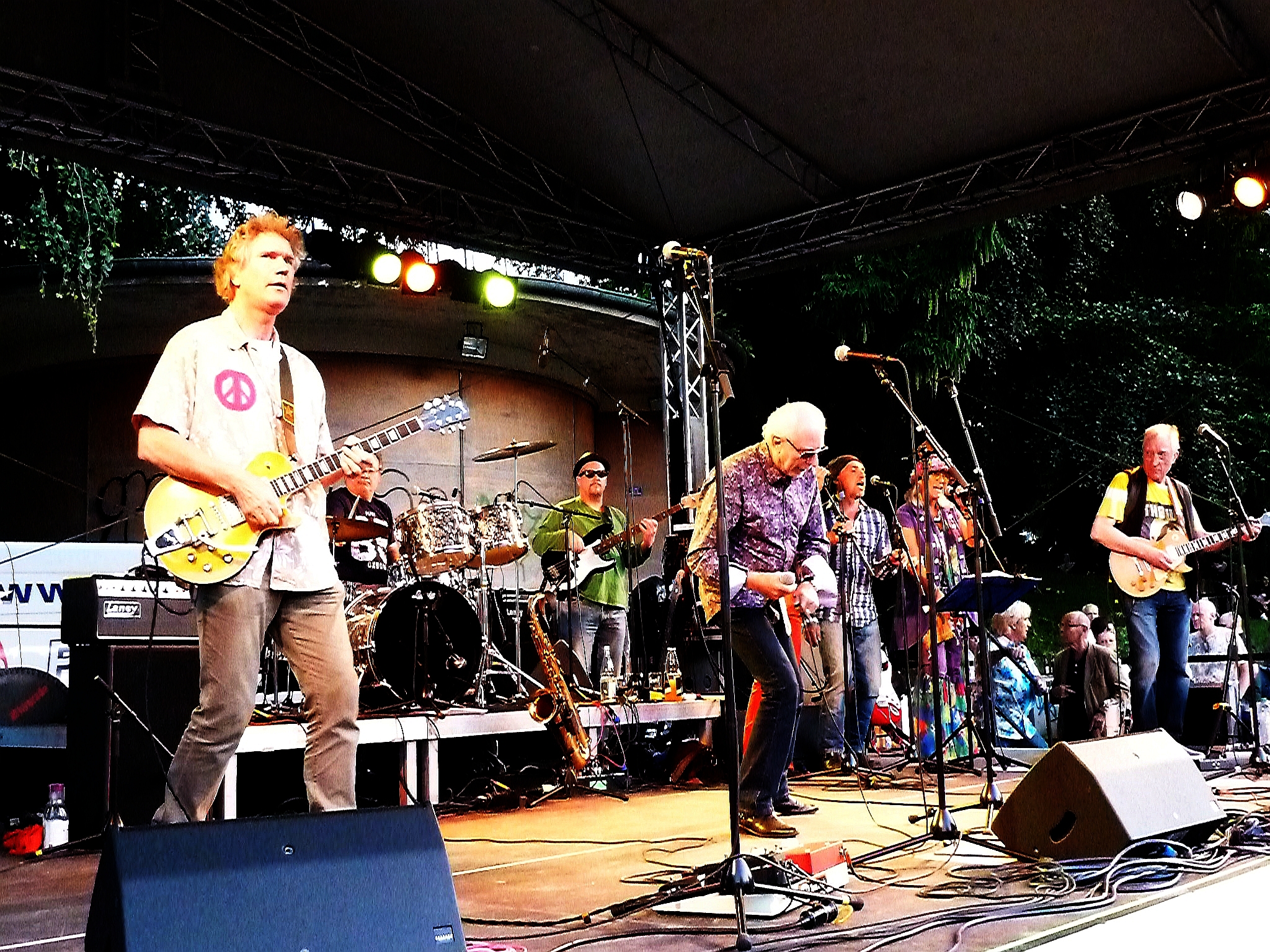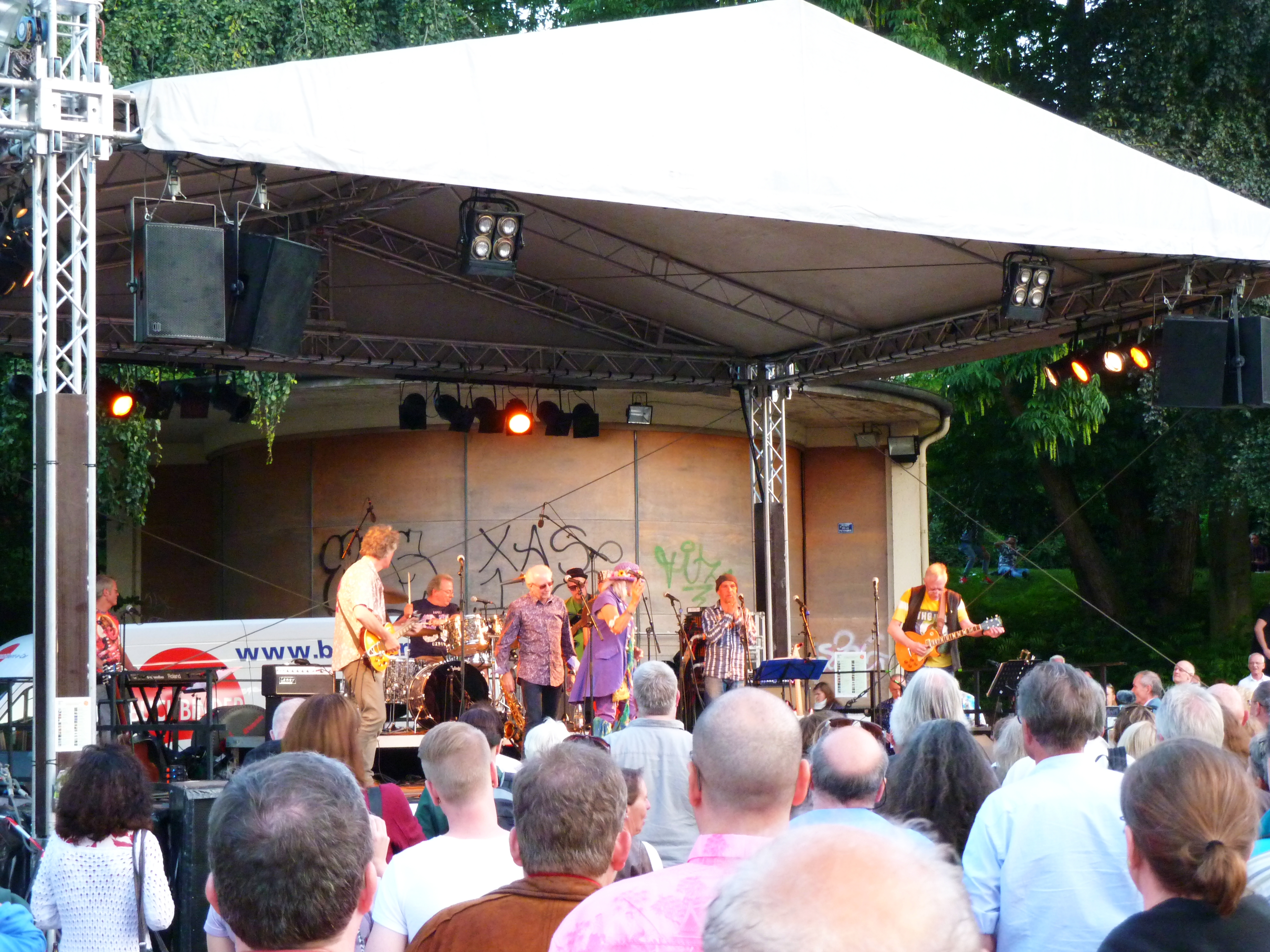 Ist es Nostalgie? Nachweinen an die „guten alten Zeiten“? Vielleicht ein bisschen schon. Aber vor allem huldigt die Truppe einer Ära, in der wunderbare Rock- und Pop-Klassiker geschaffen wurden. Jeder wird seine eigenen Lieblinge aus dieser Zeit haben. Free, Steppenwolf, Bread, Steamhammer, The Who (Natürlich lief „My Generation“ in einer recht eigensinnigen Version voller Selbstironie und Power!), Jefferson Airplane… Und perfekt war sicherlich auch nicht jede Darbietung an diesem Abend. Was aber rüberkam, das war die Lust und Freude an dieser Musik. Was will man mehr? Klar, das Publikum wurde mehrheitlich bestimmt von Grauköpfen bestimmt. Aber nicht nur. Jede Menge junge Leute hatten den Weg auf die Ostseite der Bonner Uni gefunden und genossen die wunderbare lockere Stimmung auf der Wiese.