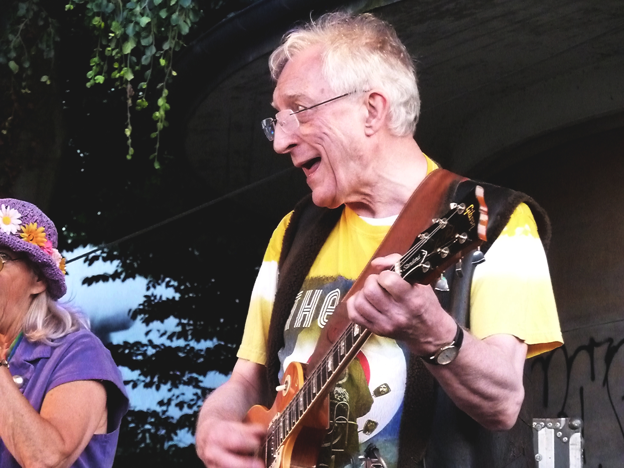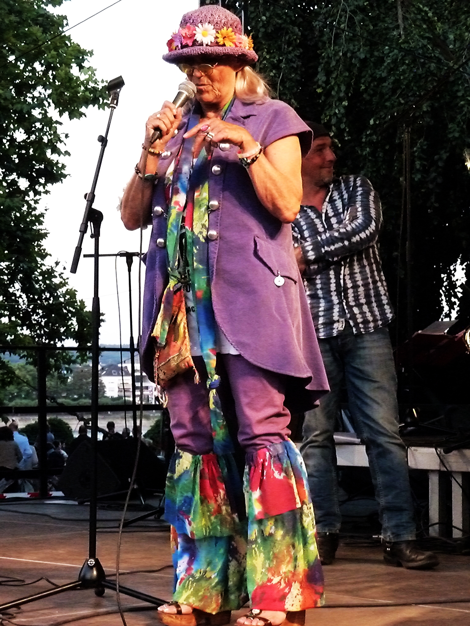 Bea Tradt trat gewohnt farbenfroh als Hippie-Braut auf die Bühne. Die Urmutter der Bonner Sunny Skies, für die sie 1973 bis 1980 gesungen hat, bewies sich wieder einmal als entkrampfte Moderatorin. Ihr ist es zu verdanken, dass sich die alten S…, äh, die Bonner Szenelegenden zusammenschlossen. 2009 brachte sie die Rock-Veteranen zusammen und gründete die Band Sixties United.