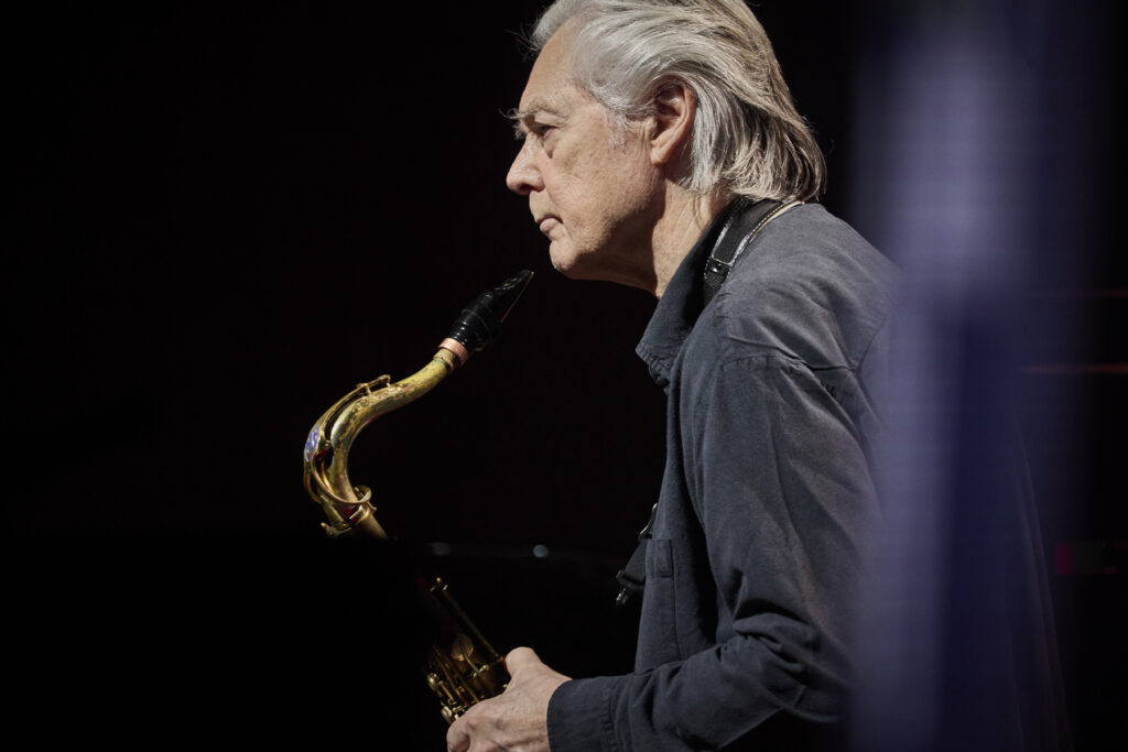 Gerade in diesen Momenten zeigt sich die besondere Qualität von Rainer Brüninghaus, dessen Spiel sich jeder vordergründigen Virtuosität verweigert. Brüninghaus ist kein Pianist der großen Gesten, sondern einer der klanglichen Setzungen: seine Akkorde stehen wie fein gearbeitete Säulen im Raum, oft reduziert auf wenige Töne, dafür mit umso größerer Wirkung. Er arbeitet mit Wiederholungen, mit minimalen Verschiebungen, mit einem fast schon kammermusikalischen Gespür für Balance. Dabei nutzt er auch die elektronischen Klangflächen nie als Selbstzweck, sondern als atmenden Hintergrund, der Garbareks Linien trägt. Besonders in „Khach“ und später in seinem Solo „Phonon“ wird diese ästhetische Haltung deutlich – eine Musik des Andeutens, nicht des Ausformulierens, auch wenn er in seinem Solo gegen Ende mit grollenden und donnernden Passagen einmal seine wuchtige Seite zeigt. Am Flügel entwirft er ein feines Geflecht aus motivischen Fragmenten, tastend, suchend, von beinahe klassischer Klarheit – ein Innehalten, das im Kontext dieses Konzerts wie ein Atemholen wirkt.
